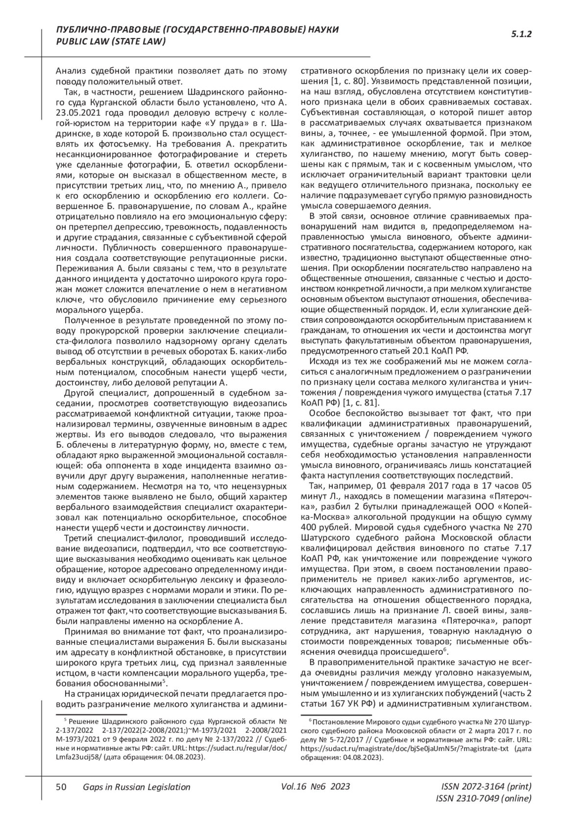 1. Смоляков, А. И. Проблемные вопросы квалификации мелкого хулиганства / А. И. Смоляков // Научный вестник Орловского юридического института МВД России имени В.В. Лукьянова. - 2018. - № 1(74). - С. 80-83. EDN: YSLHLC