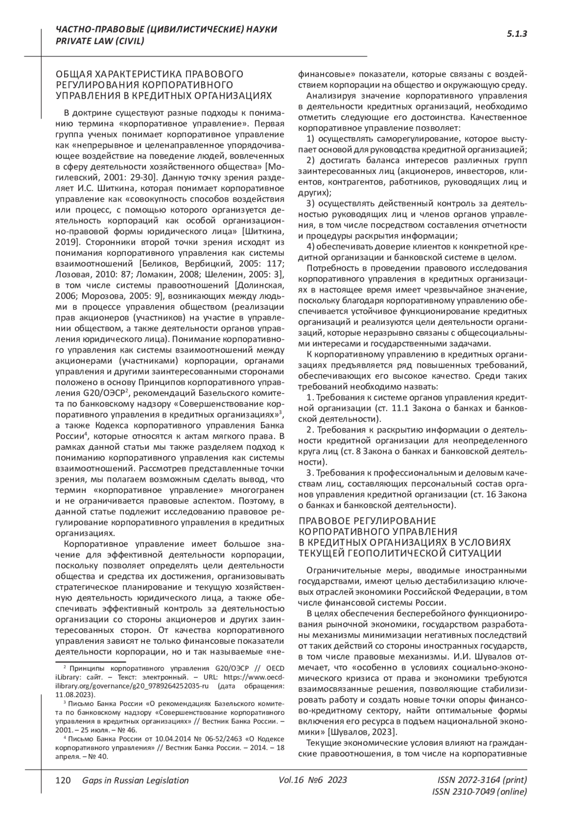 17. Шувалов И.И. Правовое обеспечение устойчивости банковской системы в условиях кризиса // Журнал российского права. 2023. № 5. С. 126-139. EDN: MBWZBO
