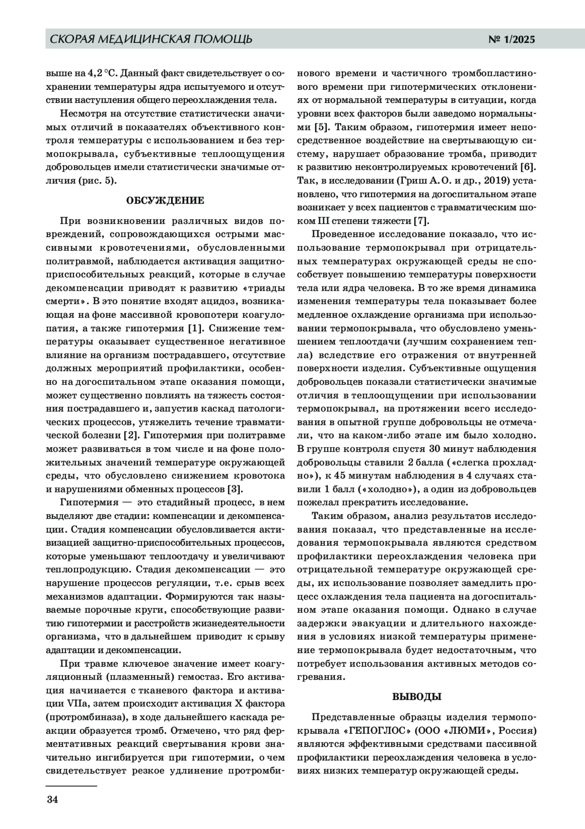 7. Гирш А.О., Стуканов М. М., Леонов Г. В. и др. Сроки возникновения и частота развития гипотермии у больных с шокогенной травмой // Скорая медицинская помощь. 2019. Т. 20, № 2. С. 39-45.