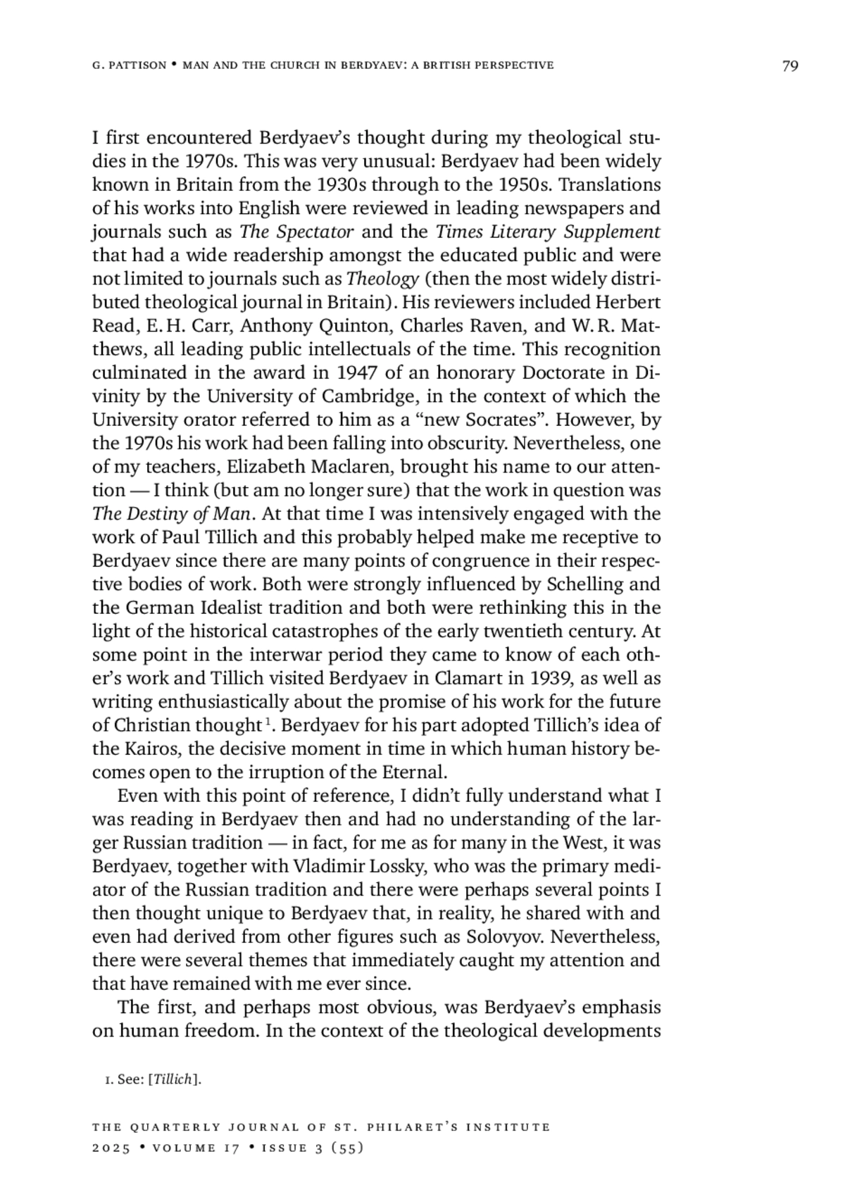 3. Tillich P. (1938). “Nicholas Berdyaev”. Religion in Life, v. 7, n. 3, pp. 407-415.