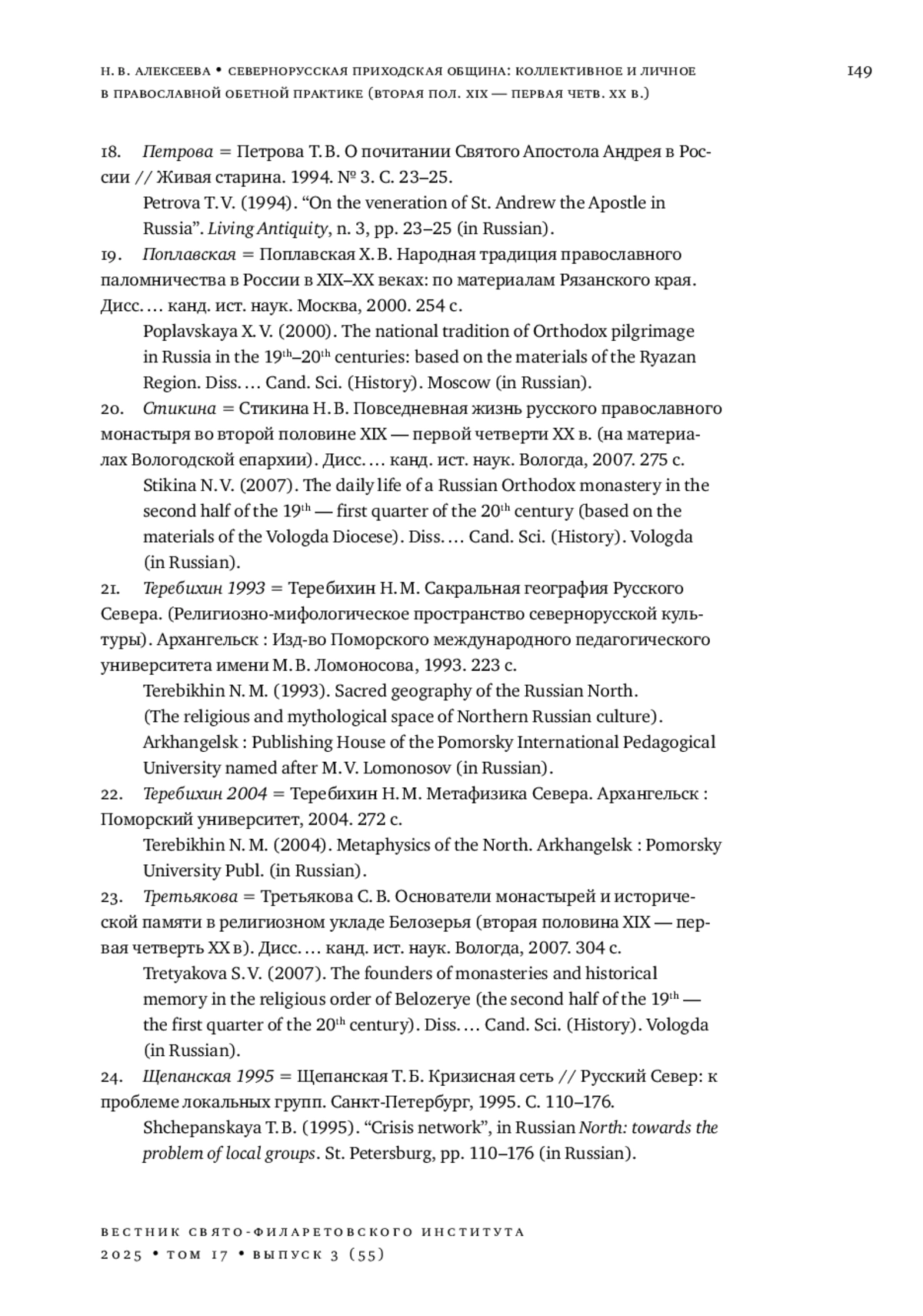 28. Теребихин Н. М. Сакральная география Русского Севера. (Религиозно-мифологическое пространство севернорусской культуры). Архангельск: Изд-во Поморского международного педагогического университета имени М. В. Ломоносова, 1993. 223 с.