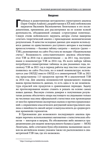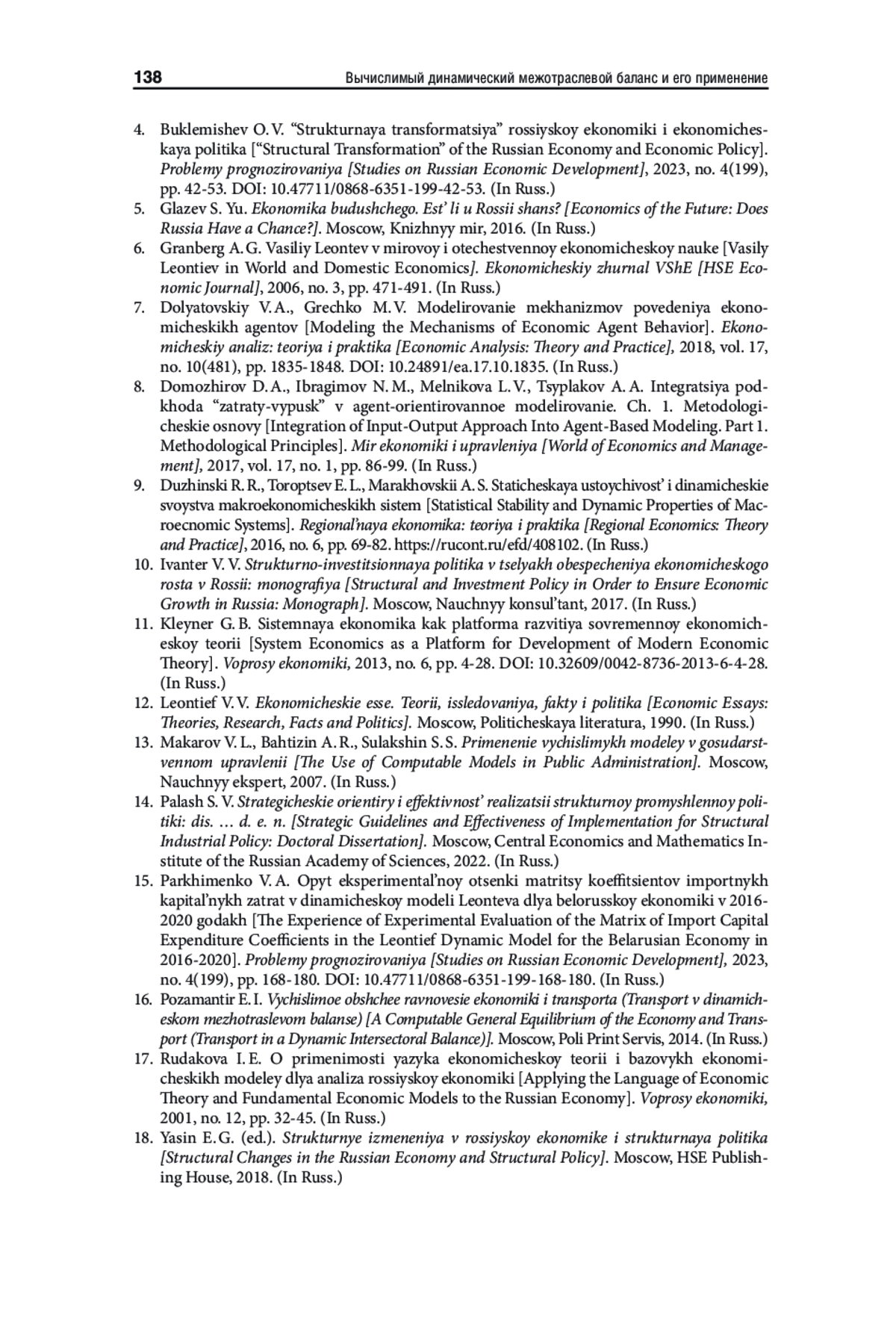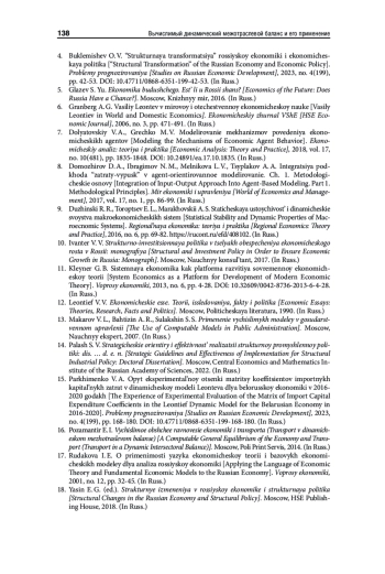 19. Суворов Н. В., Трещина С. В., Белецкий Ю. В., Балашов Е. Е. Балансовые и факторные модели как инструмент анализа и прогнозирования структуры экономики // Научные труды ИНП РАН. 2017. Т. 15. С. 50-75.