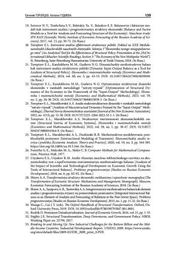 24. Торопцев Е. Л., Мараховский А. С. Структурные инерционности экономических систем // Экономика и математические методы. 2022. Т. 58. № 1. С. 38-47. https://doi.org/10.31857/S042473880016564-9.