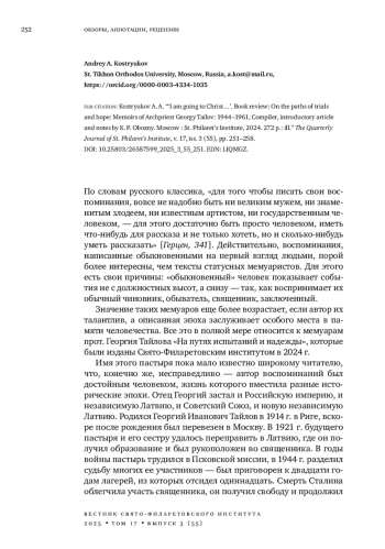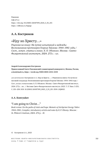 Значение таких мемуаров еще более возрастает, если автор их талантлив, а описанная эпоха заслуживает особого места в памяти человечества. Все это в полной мере относится к мемуарам прот. Георгия Тайлова «На путях испытаний и надежды», которые были изданы Свято-Филаретовским институтом в 2024 г.