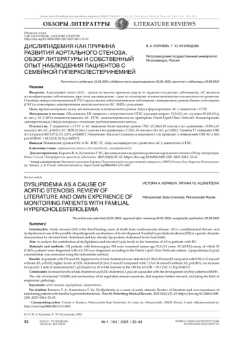 Резюме Введение. Аортальный стеноз (АС) – третья по частоте причина смерти от сердечно-сосудистых заболеваний. АС является мультифакторным заболеванием, при этом дислипидемия – один из возможных этиопатогенеических механизмов его развития. Семейная гиперхолестеринемия (СГХС) представляет собой генетическое заболевание с повышением уровня общего холестерина (ОХС) и холестерина липопротеинов низкой плотности (ХС ЛНП) с рождения.