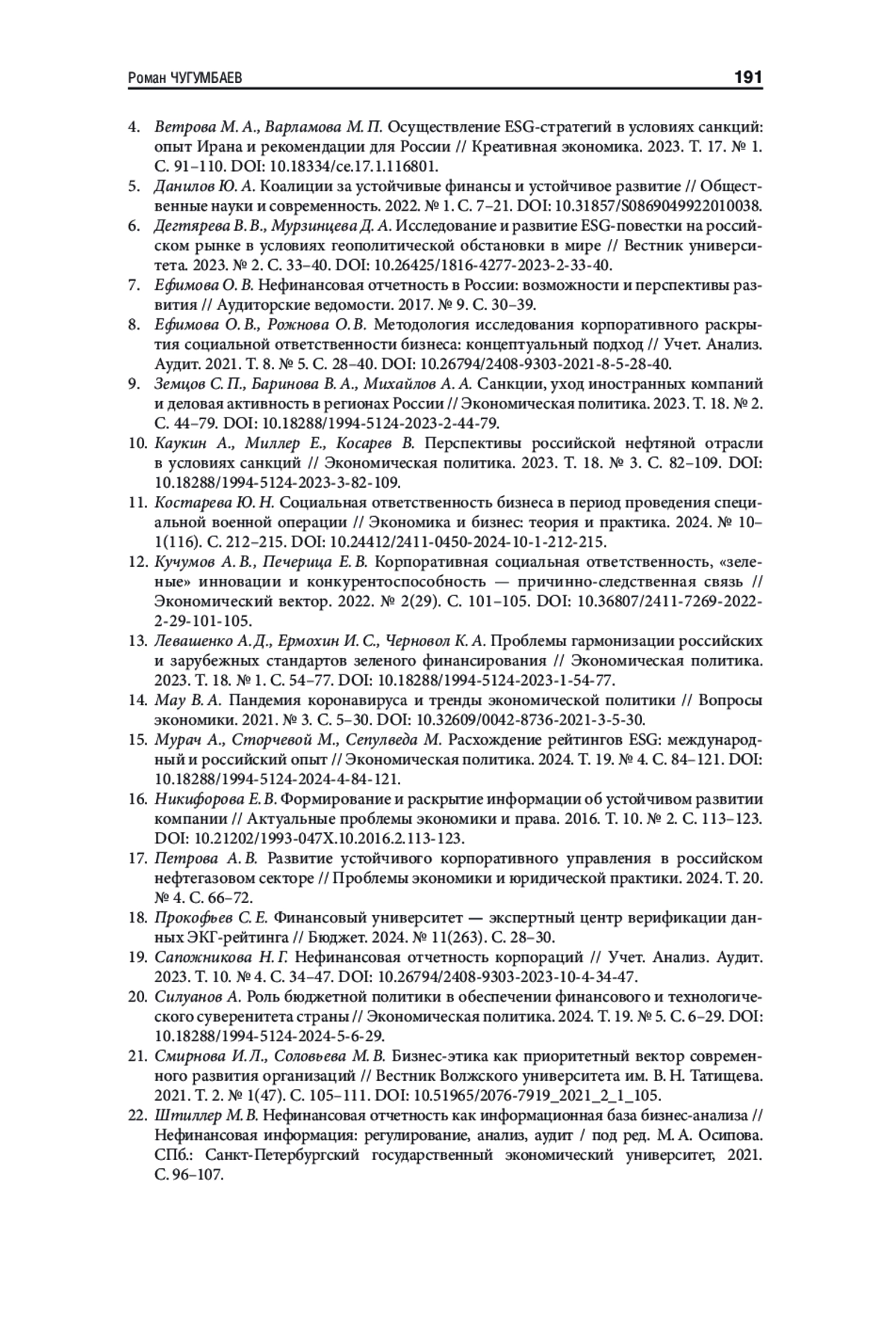 4. Ветрова М. А., Варламова М. П. Осуществление ESG-стратегий в условиях санкций: опыт Ирана и рекомендации для России // Креативная экономика. 2023. Т. 17. № 1. С. 91-110. https://doi.org/10.18334/ce.17.1.116801.