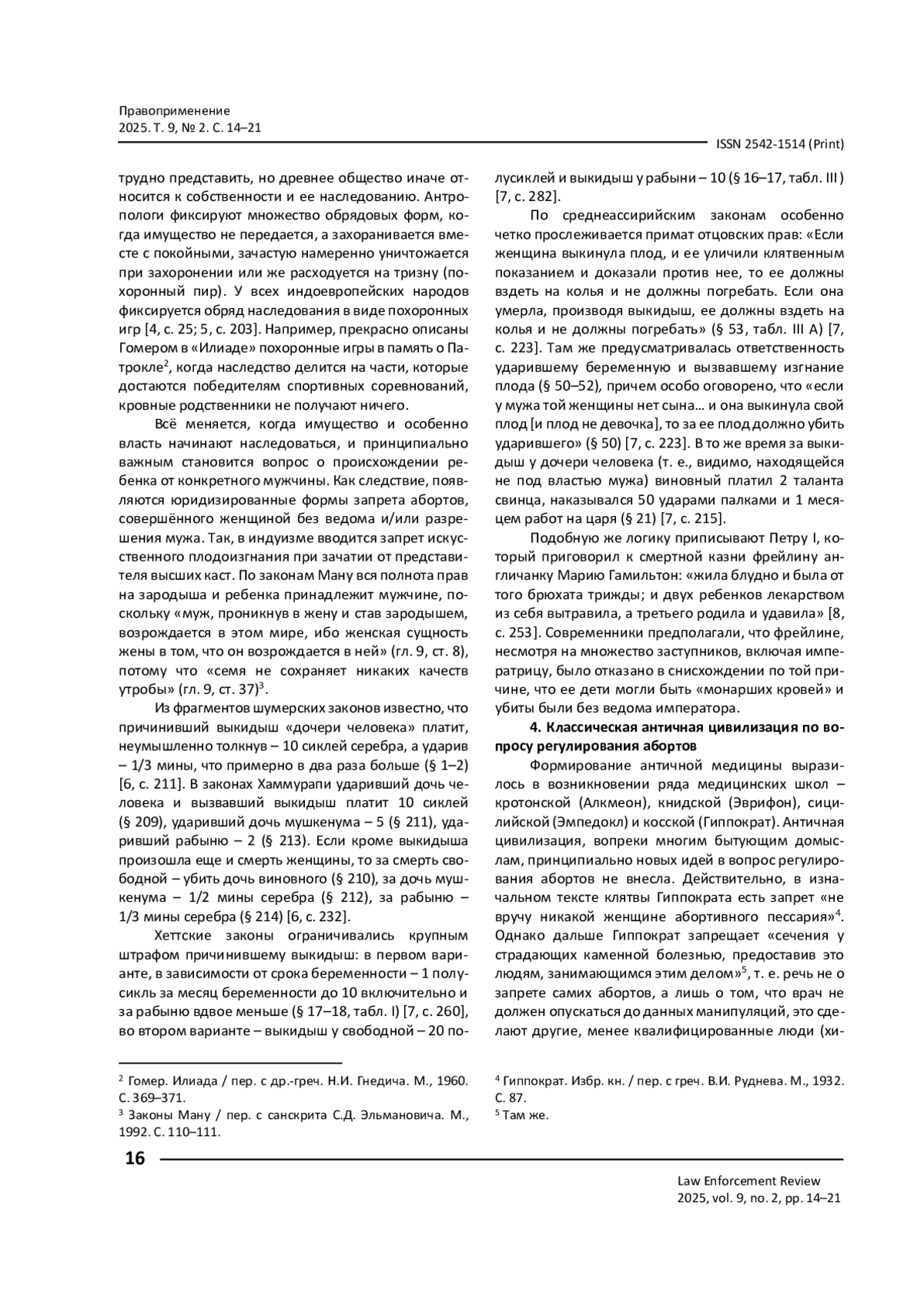 Исследуются развитие законодательства об абортах в соотношении с эволюцией представленного человека о мироустройстве, усложнении структуры общества и изменении системы наследования в обществе. Представлено, как эти факторы влияют на развитие предпосылок формирования бобно-медицинских знаний, так как вопрос о живо- или мертворождении прямо связан с наследованием монархической власти, ее легитимизацией. Статья иллюстрирована примерами, которые подкрепляются ссылками на законодательство соответствующего периода. Автор обосновывает углубленное исследование генезиса законодательства об абортах с Датой представления полной исторической картины, в рамках которой начинается формироваться судебная медицина и закрепляться на законодательном уровне.