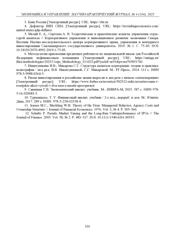 12. 	Schultz P. Pseudo Market Timing and the Long-Run Underperformance of IPOs // The Journal of Finance. 2003. Vol. 58, № 2. P. 483-517.  DOI: 10.1111/1540-6261.00535  EDN: EUIGAT