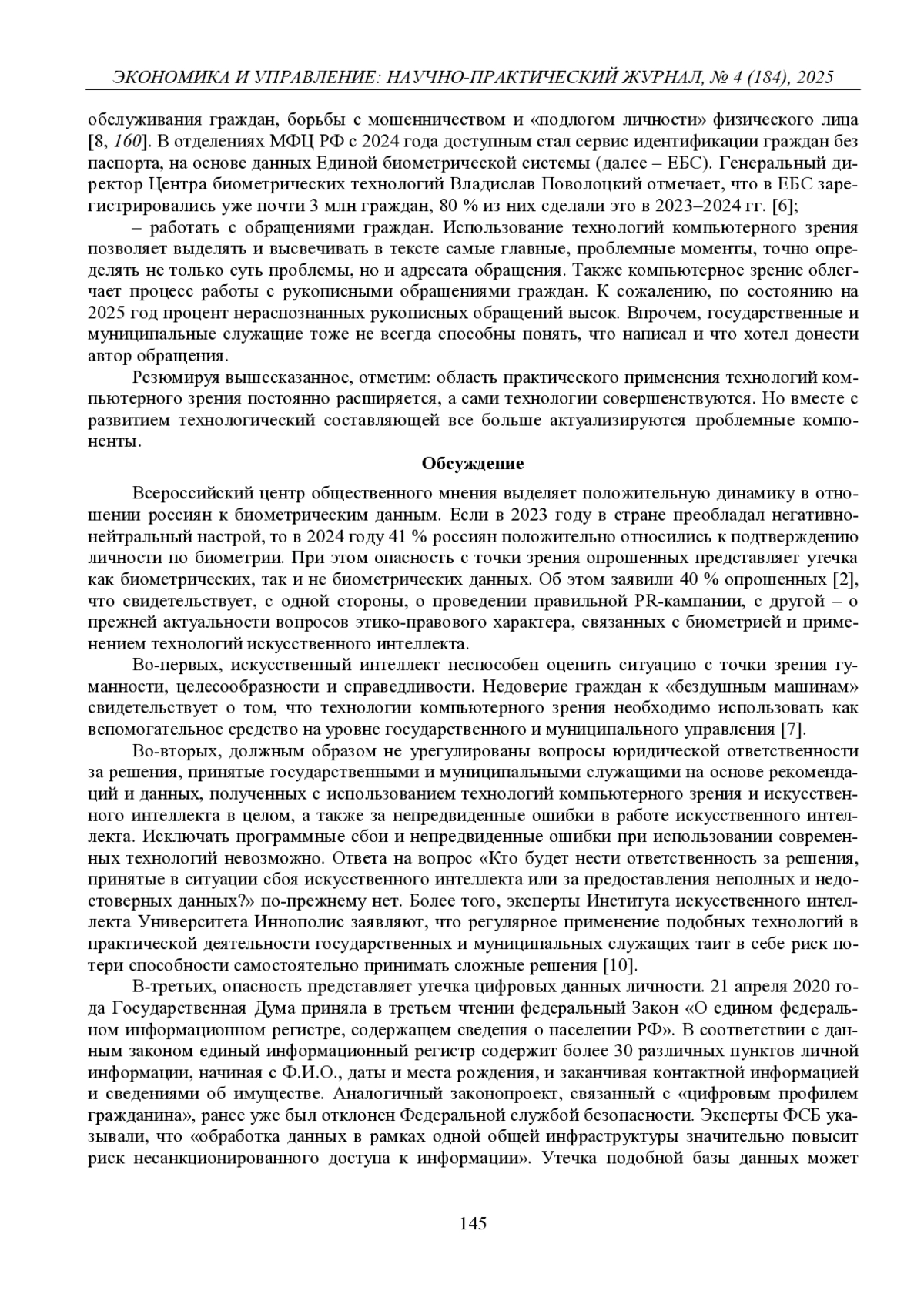 6. Капранов О. Не менее четверти россиян позитивно оценивают внедрение биометрии в стране [Электронный ресурс]. URL: https://rg.ru/2025/02/01/ne-menee-chetverti-rossiian-pozitivno-ocenivaiut-vnedenie-biometrii-v-strane.html.