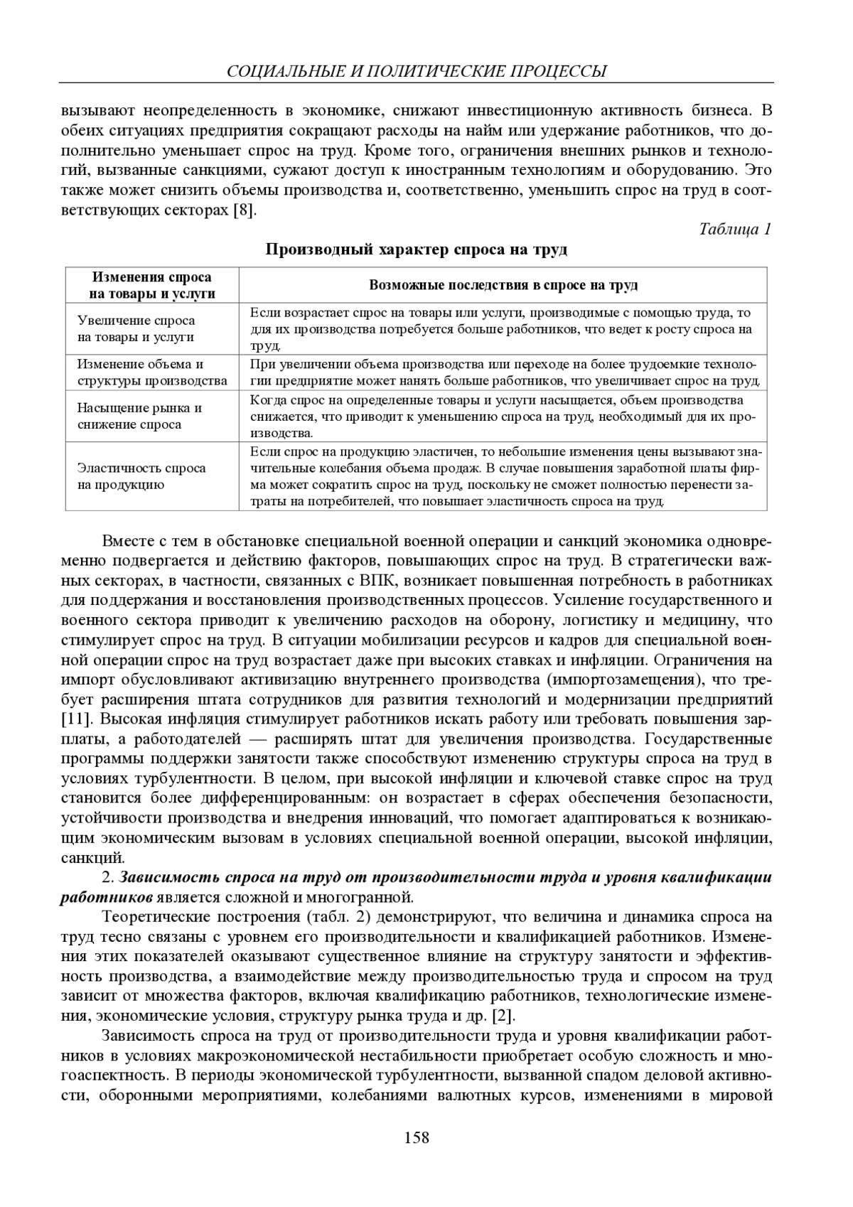 В статье рассматриваются основные теоретические подходы к анализу спроса на труд, а также его проявления в условиях макроэкономической нестабильности. Исходя из того, что особенностями спроса на рынке труда являются его производный характер, зависимость от производительности труда нанимаемых работников, взаимозаменяемость и взаимодополняемость труда с другими факторами производства, автор исследует влияние на его изменения таких ситуаций, как высокие уровни инфляции и ставки процента, специальная военная операция, санкции, импортозамещение.