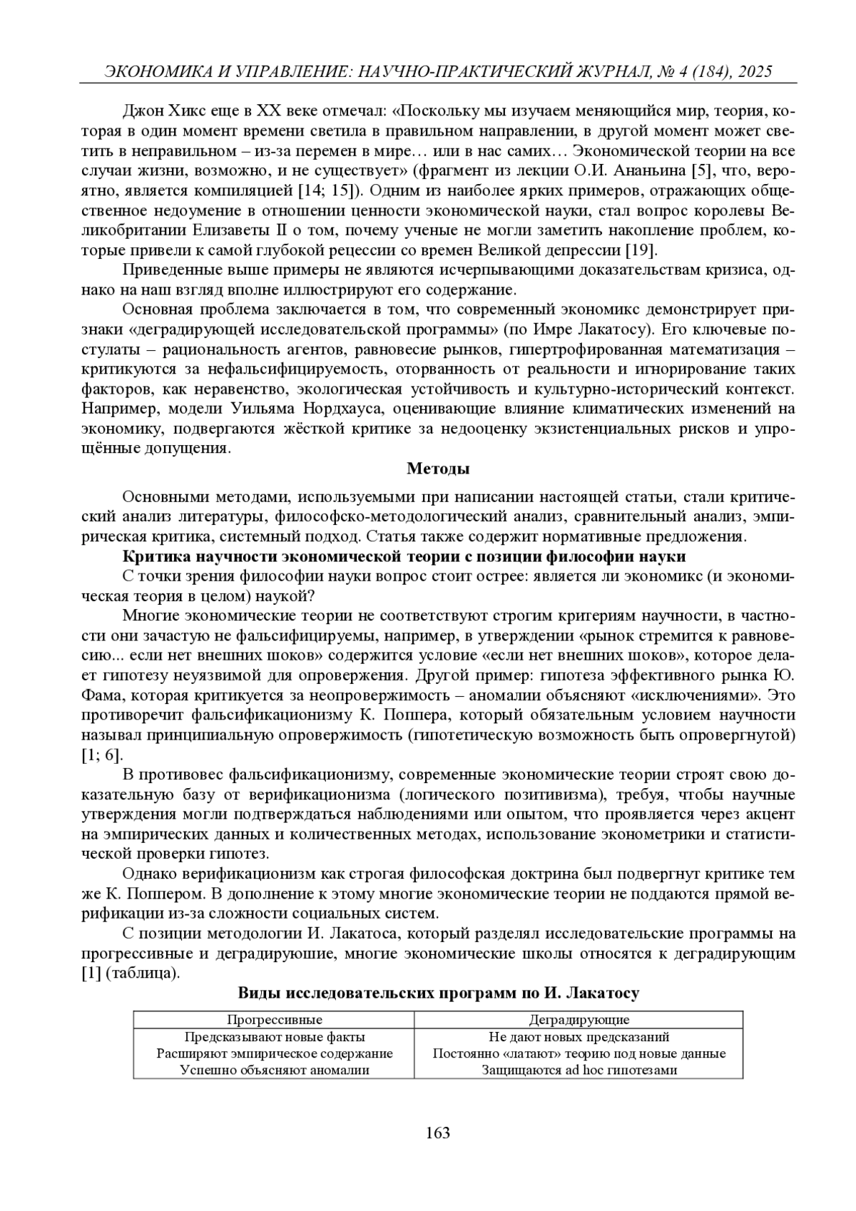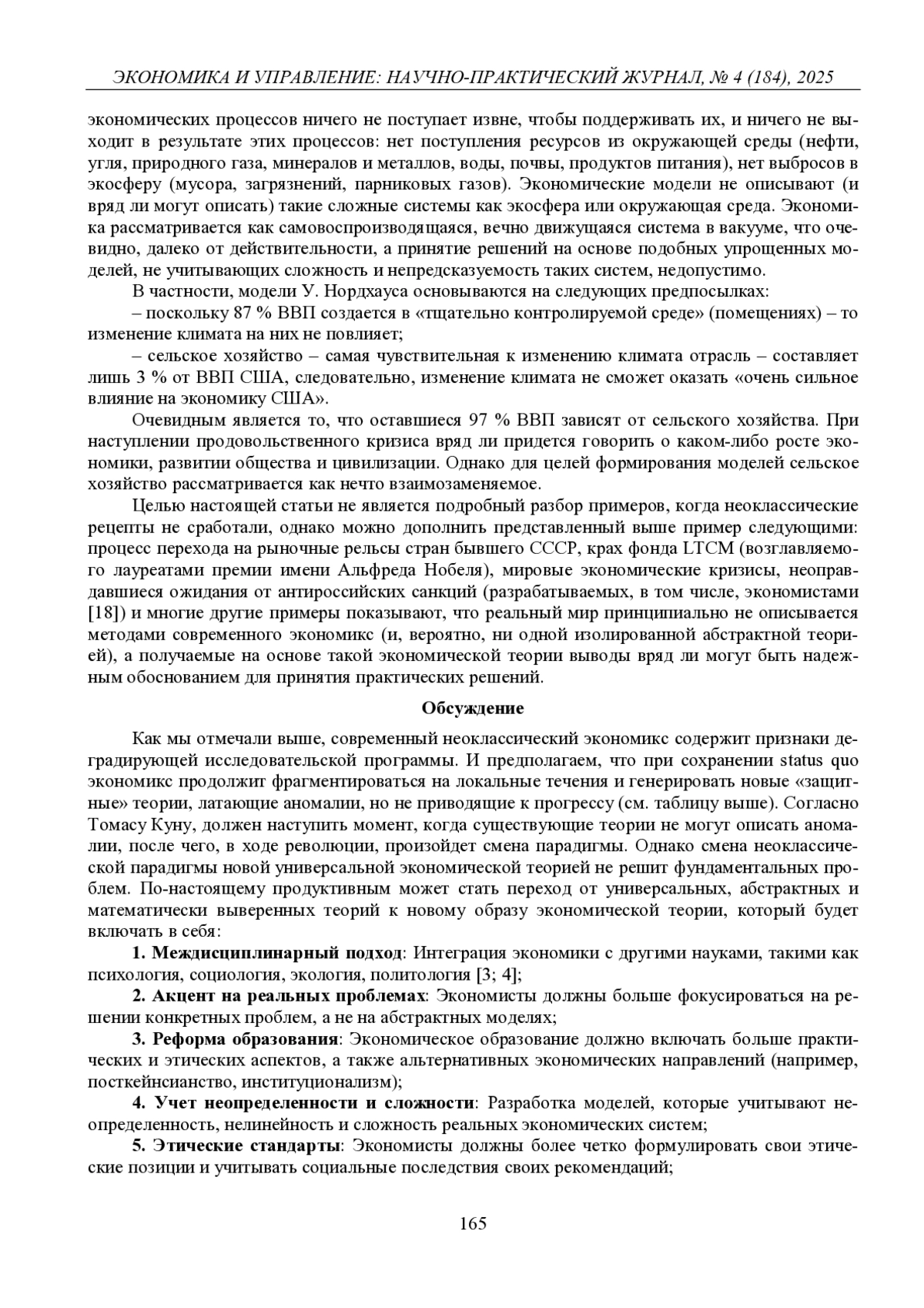 Неоклассический экономикс (ядро современной экономической теории) переживает глубокий методологический и эпистемологический кризис [2; 6–9; 10; 13; 17]. Кризис этот протекал большей частью латентно, периодически обострялся (наиболее яркий пример – критика во время и после «великой рецессии» 2008 г.), но, начиная с 2020–2022 года, вместе с ростом энтропии в окружающем нас мире, проблема экономикс как прикладной науки стала очевидной.