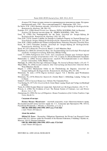 7. Деларов П.В. Очерк истории личности в древнеримском гражданском праве. Историко-юридический опыт. СПб.: Изд-е книгопродавца Н.Г. Мартынова, 1895. 156 с.