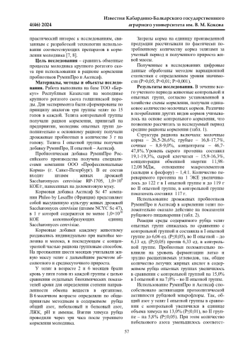 Одной из главных задач молочного скотоводства является обеспечение высоких темпов роста и развития молодняка, которое напрямую зависит от сбалансированных рационов, соответствующих норме кормления [1, 2].