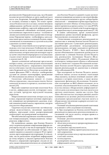 Ключевые фразы: нарушения костного ремоделирования, БОЛЕЗНЬ ПЕДЖЕТА, деформирующий остеит, редкие варианты заболевания