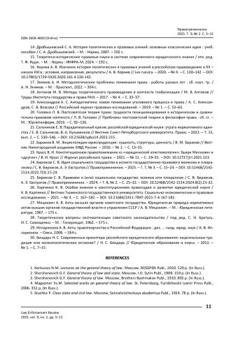 16. Корнев А. В. Изучение истории политических и правовых учений в российском правоведении в ХХ - начале ХХI в.: условия, направления, результаты / А. В. Корнев // Lex russica. - 2020. - № 4. - С. 130-142. - https://doi.org/10.17803/1729-5920.2020.161.4.130-142.