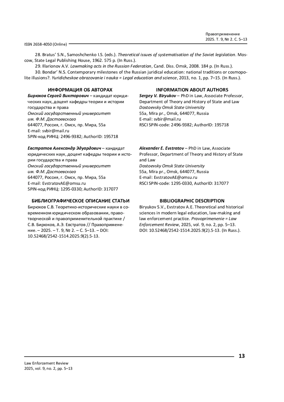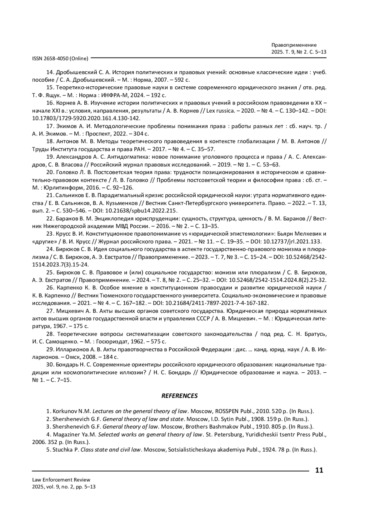 25. Бирюков С. В. Правовое и (или) социальное государство: монизм или плюрализм / С. В. Бирюков, А. Э. Евстратов // Правоприменение. - 2024. - Т. 8, № 2. - С. 25-32. - https://doi.org/10.52468/2542-1514.2024.8(2).25-32.