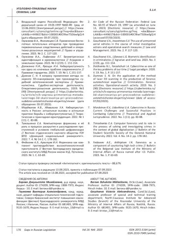 8. Тимошенко Е.А. Компьютерная форензика и её роль в процессе раскрытия и расследования преступлений в условиях глобальной цифровизации // Вестник студенческого научного общества ГОУ ВПО “Донецкий национальный университет”. 2022. Т. 4. № 14-2. С. 178-182. EDN: KRSFKN
