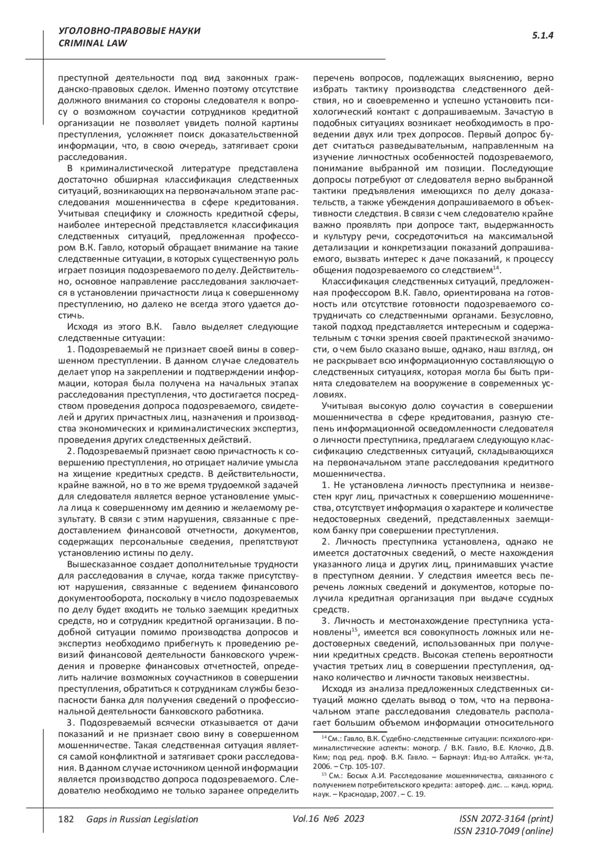 Gavlo V. K. Problems of theory and practice of investigation of embezzlement of funds in the field of bank lending: monograph / V. K. Gavlo, M.A. Neymark; Federal Agency for Education of Russia, Altai State University. - Barnaul: Publishing House of the Altai State University, 2009. - pp. 110-115.