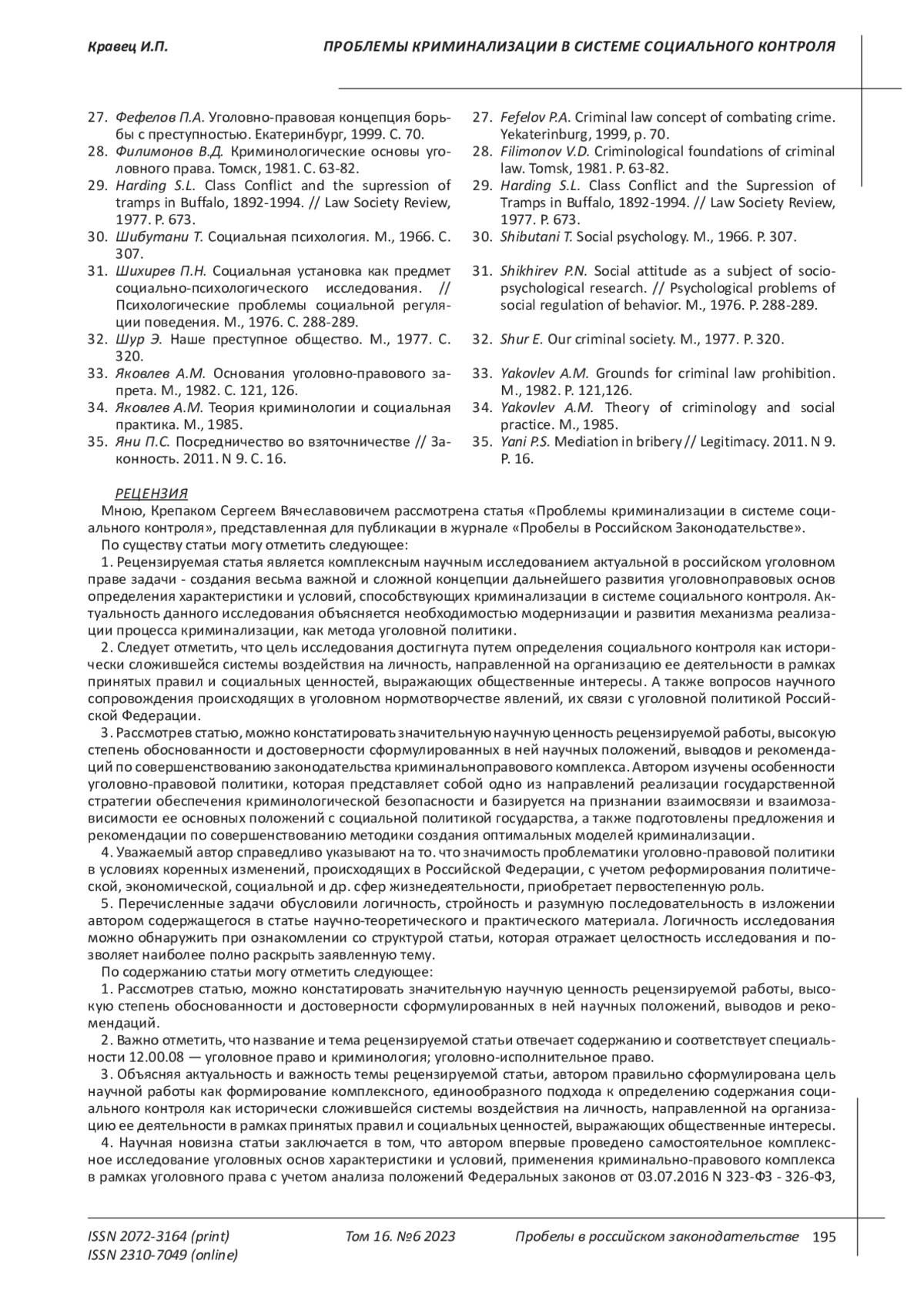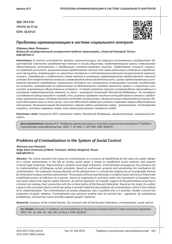 20. Кузнецов А. П. Криминализация - декриминализация, пенализация - депенализация как содержание уголовной политики // Вестник краснодарского университета МВД России. - 2017. - № 1 (35). EDN: YITPOJ