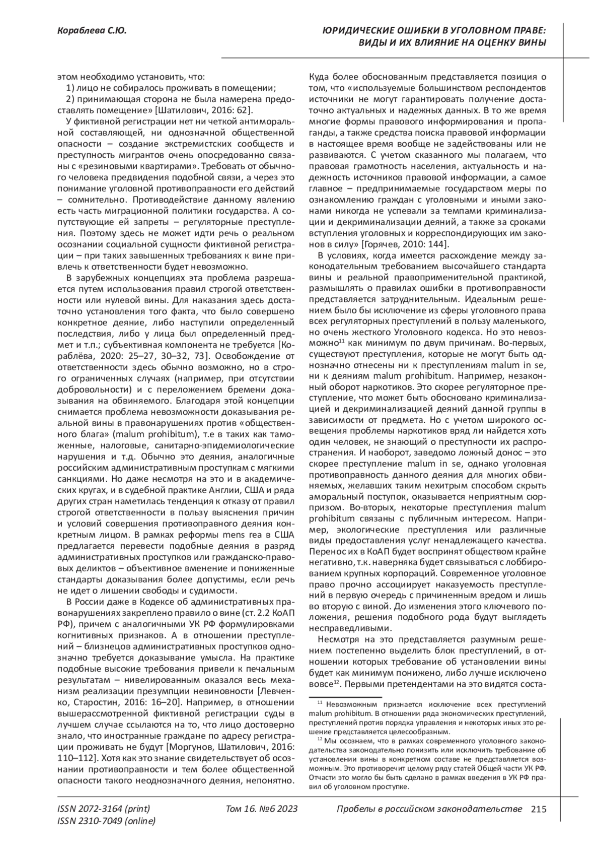 11. Ширяев А. Ю. Проблема оценки умышленной вины в свете учения о юридической ошибке // Российское право: образование, практика, наука. 2020. № 6. С. 49-55. EDN: AVCKYY