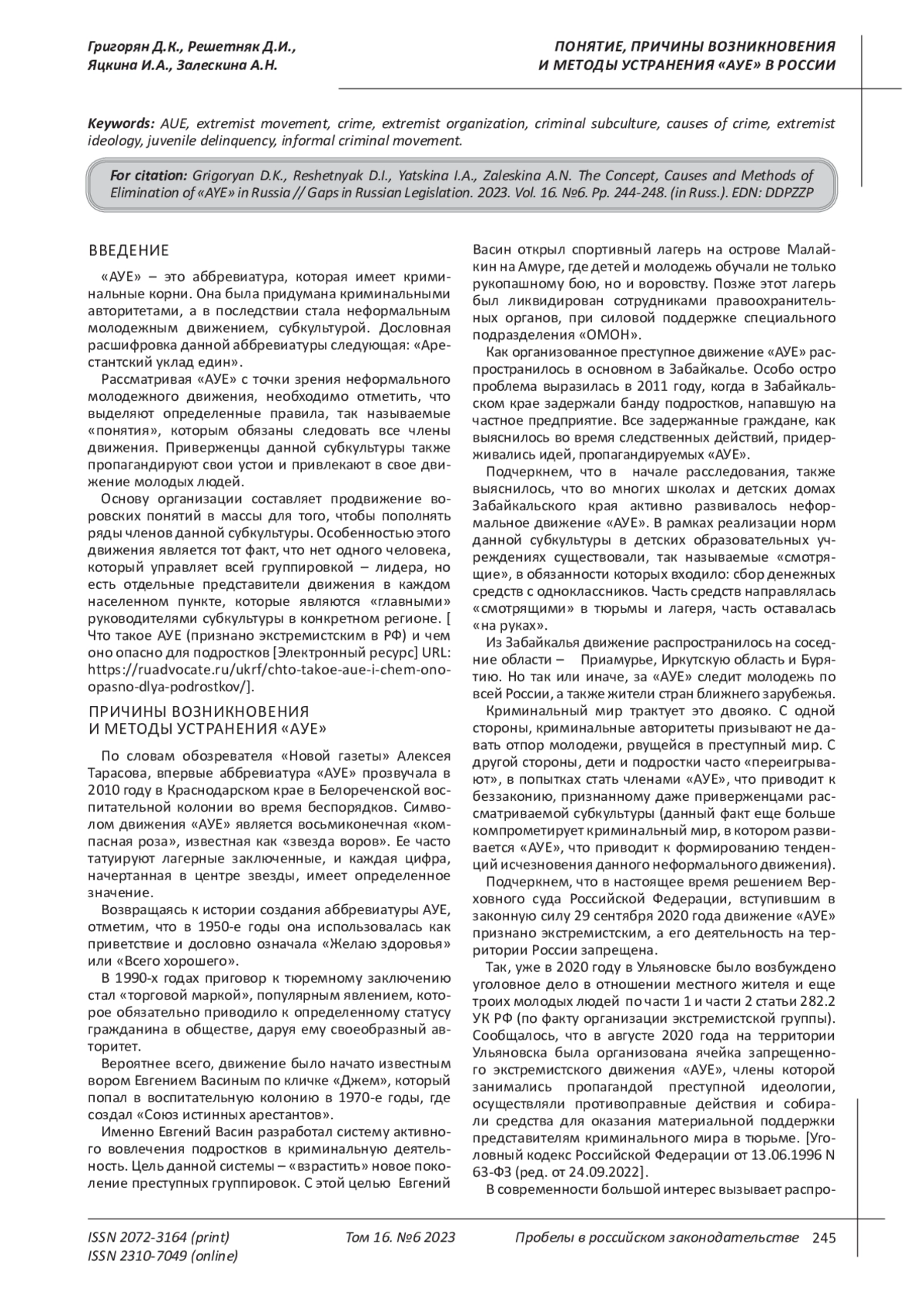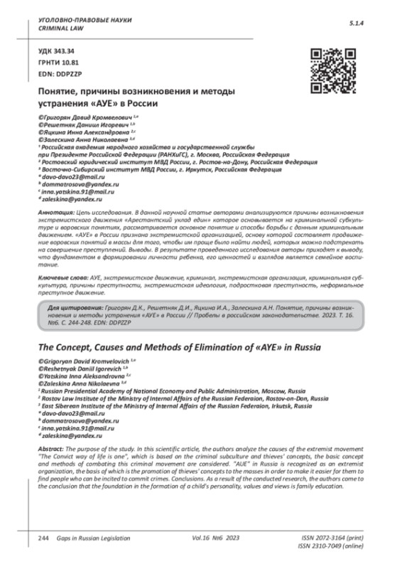 2. Что такое АУЕ (признано экстремистским в РФ) и чем оно опасно для подростков [Электронный ресурс] URL: https://ruadvocate.ru/ukrf/chto-takoe-aue-i-chem-ono-opasno-dlya-podrostkov/.