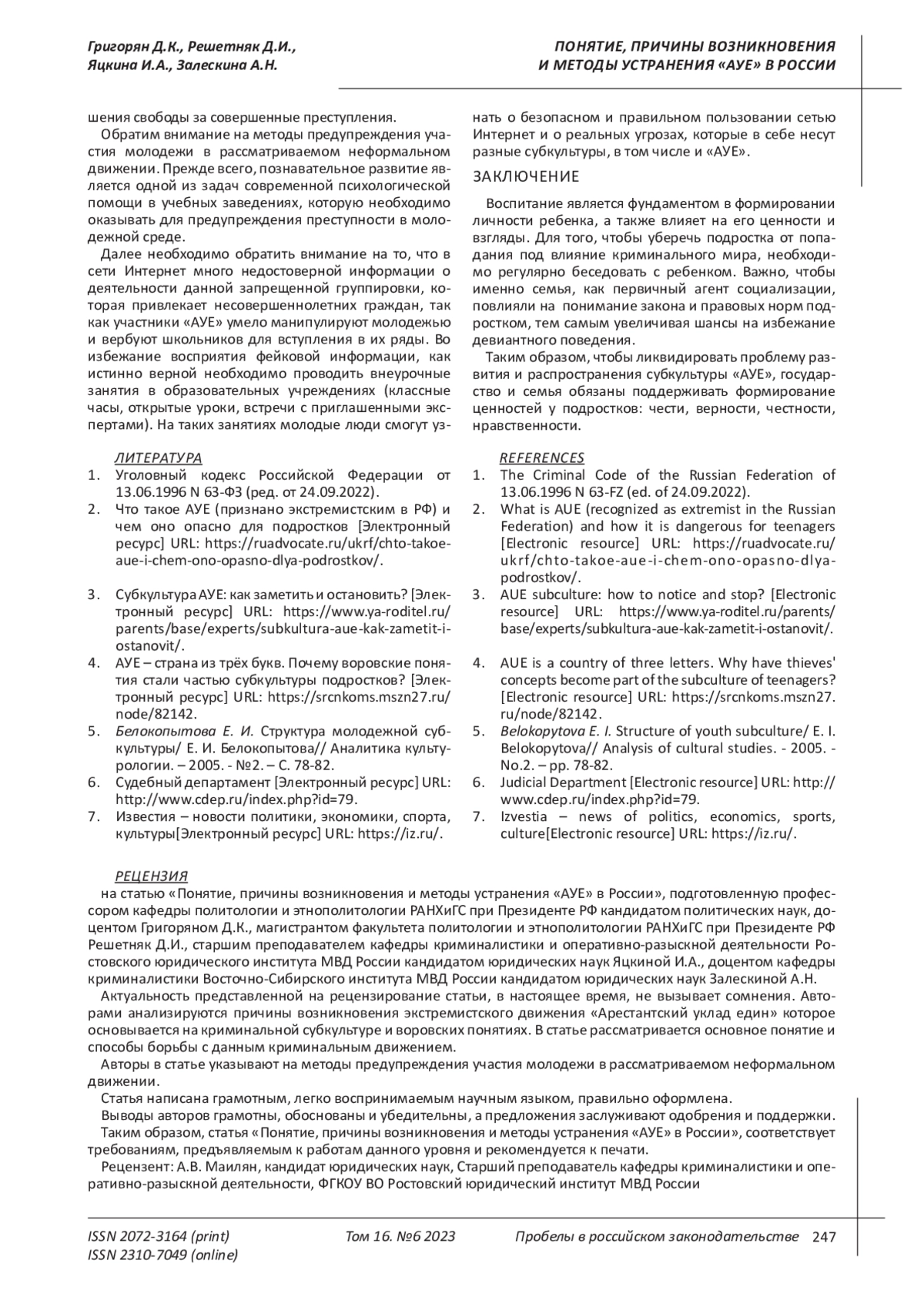 What is AUE (recognized as extremist in the Russian Federation) and how it is dangerous for teenagers [Electronic resource] URL: https://ruadvocate.ru/ukrf/chto-takoe-aue-i-chem-ono-opasno-dlya-podrostkov/.