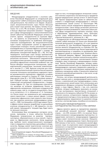 6. Константинова О.В., 2021. Торговля России с Африкой: современное положение дел // Контуры глобальных трансформаций: политика, экономика, право. Т. 14. № 3. С. 227-242. DOI: 10.23932/2542-0240-2021-14-3-13 EDN: GEFUFY