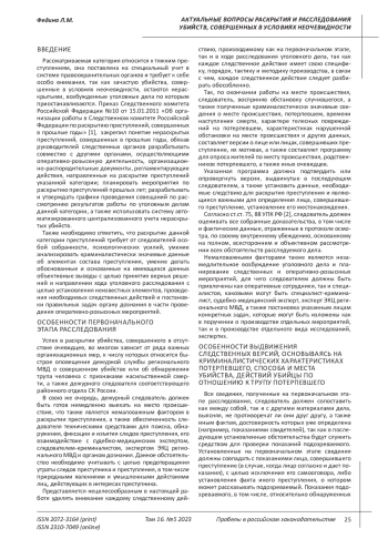 АКТУАЛЬНЫЕ ВОПРОСЫ РАСКРЫТИЯ И РАССЛЕДОВАНИЯ УБИЙСТВ, СОВЕРШЕННЫХ В УСЛОВИЯХ НЕОЧЕВИДНОСТИ