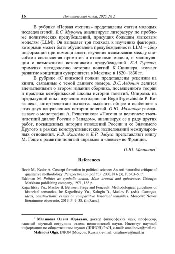 5. Малинова О.Ю. Темпоральность и другие свойства символического в политике // Символическая политика. Вып. 2: Споры о прошлом как проектирование будущего. - М.: ИНИОН РАН, 2014. - С. 5-17.