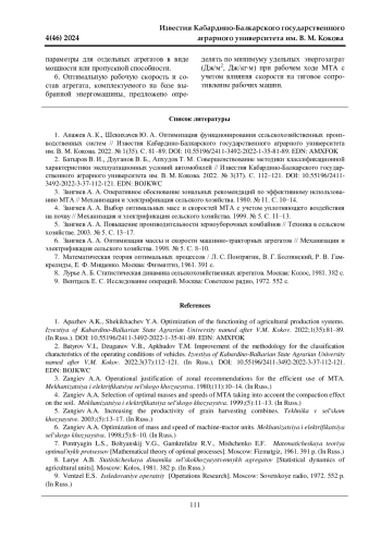 6. Зангиев А. А. Оптимизация массы и скорости машинно-тракторных агрегатов // Механизация и электрификация сельского хозяйства. 1998. № 5. С. 8-10.