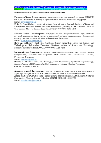 43. Ананьева Г.В., Дроздов Д.С., Инстанес А., Чувилин Е.М. Нефтяное загрязнения слоя сезонного оттаивания и верхних горизонтов многолетнемерзлых пород на опытной площадке “Мыс Болванский” в устье р. Печора // Криосфера Земли. 2003. № 1. С. 49-59.