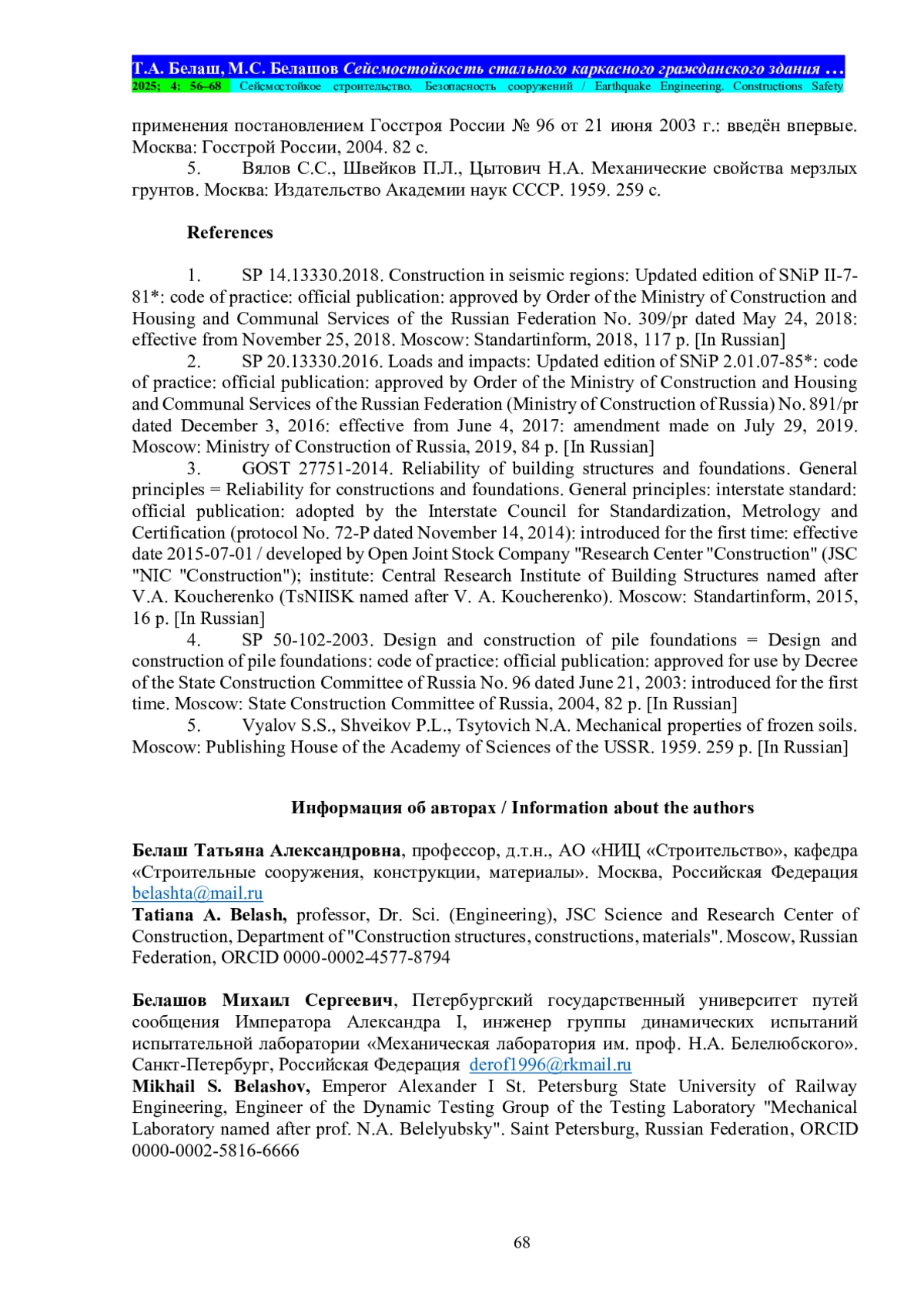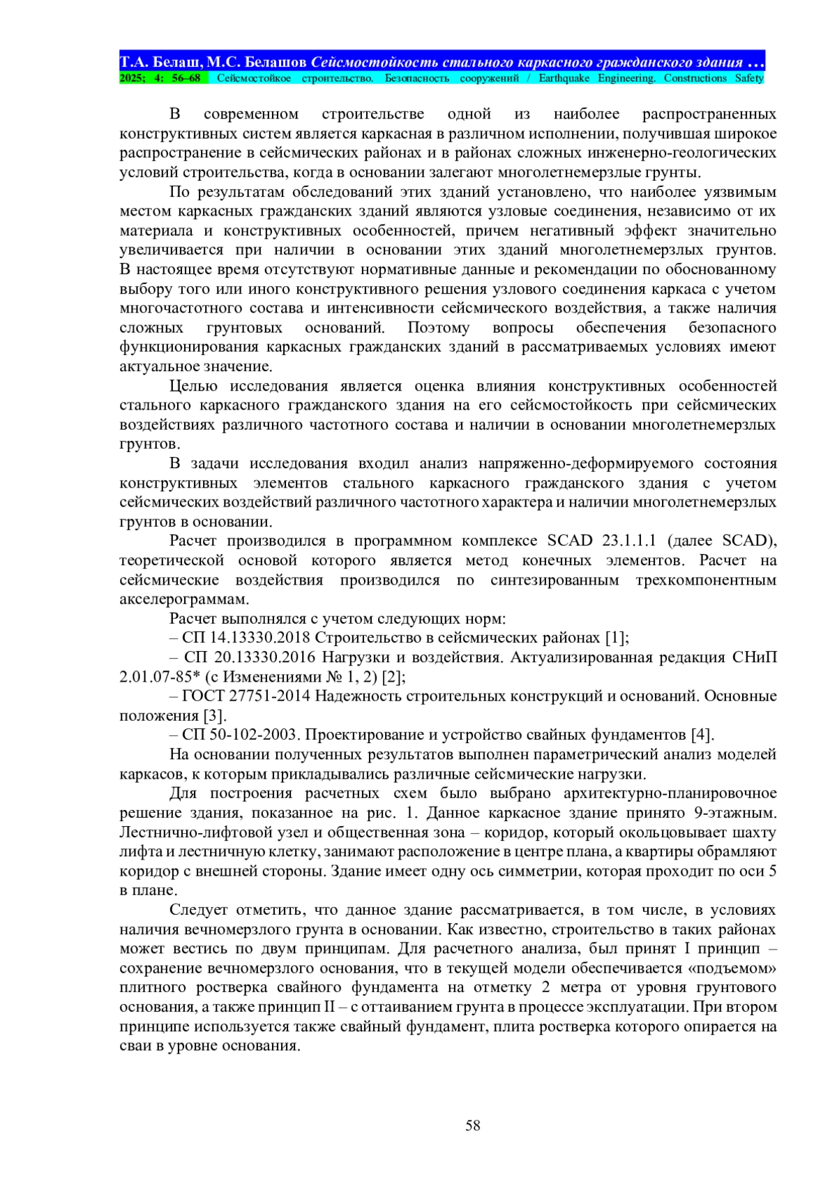 Введение. В настоящее время актуальна задача оценки сейсмостойкости стальных каркасных зданий, учитывая различные факторы, влияющие на их поведение при землетрясениях.