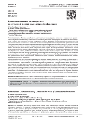 11. Суховерхов А.И. Проблемы расследования преступлений в сфере компьютерной информации // В сборнике: Глобальные и локальные тренды в управлении, экономике, юриспруденции. Материалы XIX Международной научно-практической конференции. В 4-х томах. Под общей редакцией Н.В. Лебедева. Воронеж, 2022. С. 454-460. EDN: UKRSRY