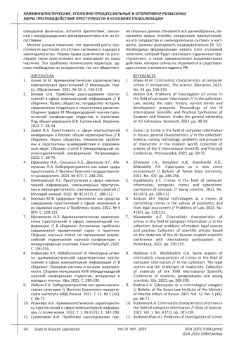 8. Нафикова Э.Р., Хабибуллина Г.А. Некоторые аспекты криминалистической характеристики преступлений в сфере компьютерной информации // В сборнике: Правовая система и вызовы современности. Сборник материалов XVIII Международной научной конференции студентов, аспирантов и молодых ученых. Уфа, 2021. С. 289-293. EDN: BBRAKN