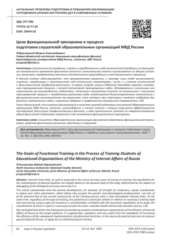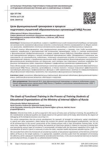 Статья: ЦЕЛИ ФУНКЦИОНАЛЬНОЙ ТРЕНИРОВКИ В ПРОЦЕССЕ ПОДГОТОВКИ СЛУШАТЕЛЕЙ ОБРАЗОВАТЕЛЬНЫХ ОРГАНИЗАЦИЙ МВД РОССИИ (2023)