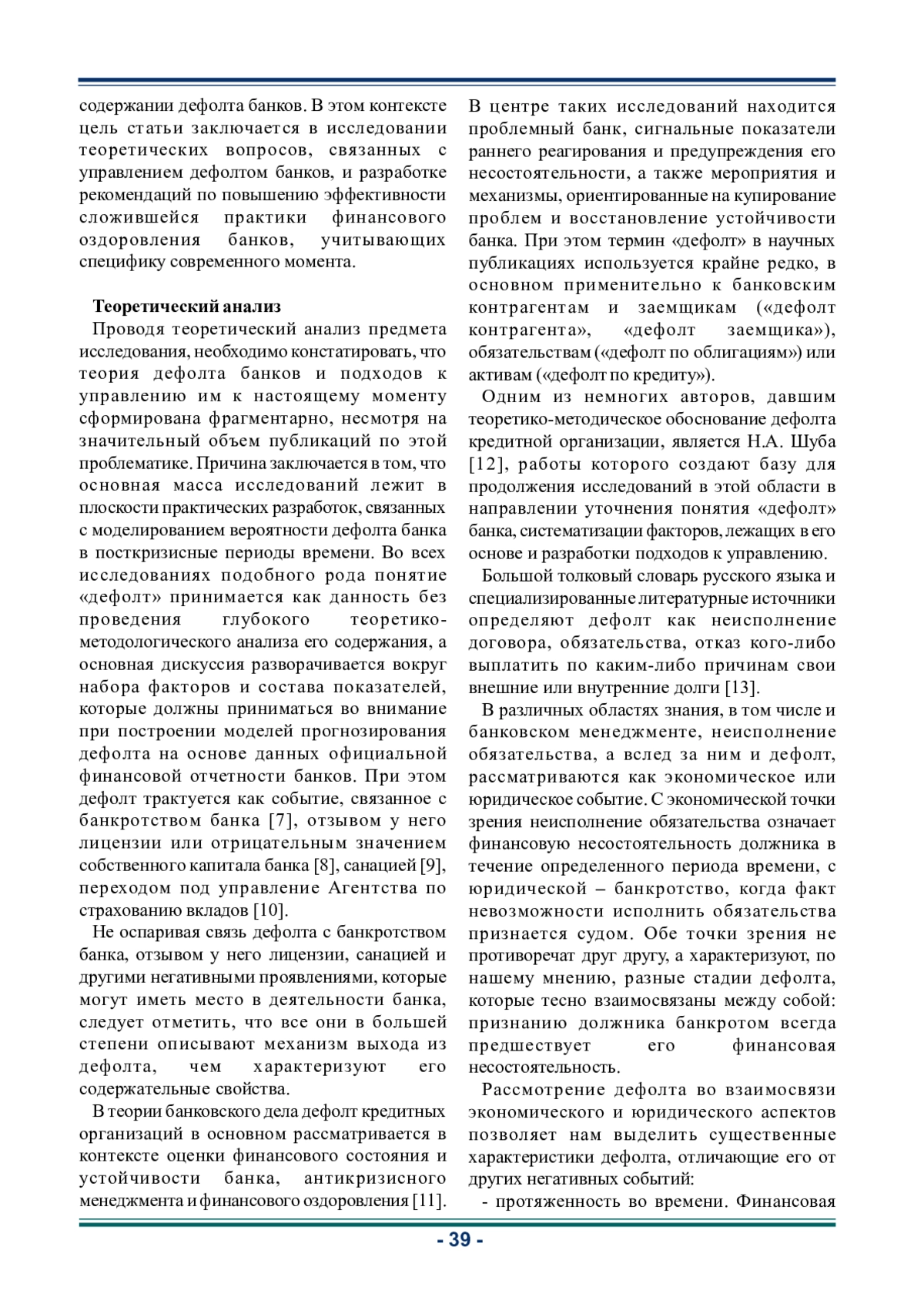 18. Шуба Н.А., Ларионова И.В. Понятие дефолта кредитной организации // Финансовые рынки и банки. 2021. № 6. URL: https://cyberleninka.ru/article/n/ponyatie-defolta-kreditnoy-organizatsii (дата обращения: 15.11.2024). EDN: QJIROP