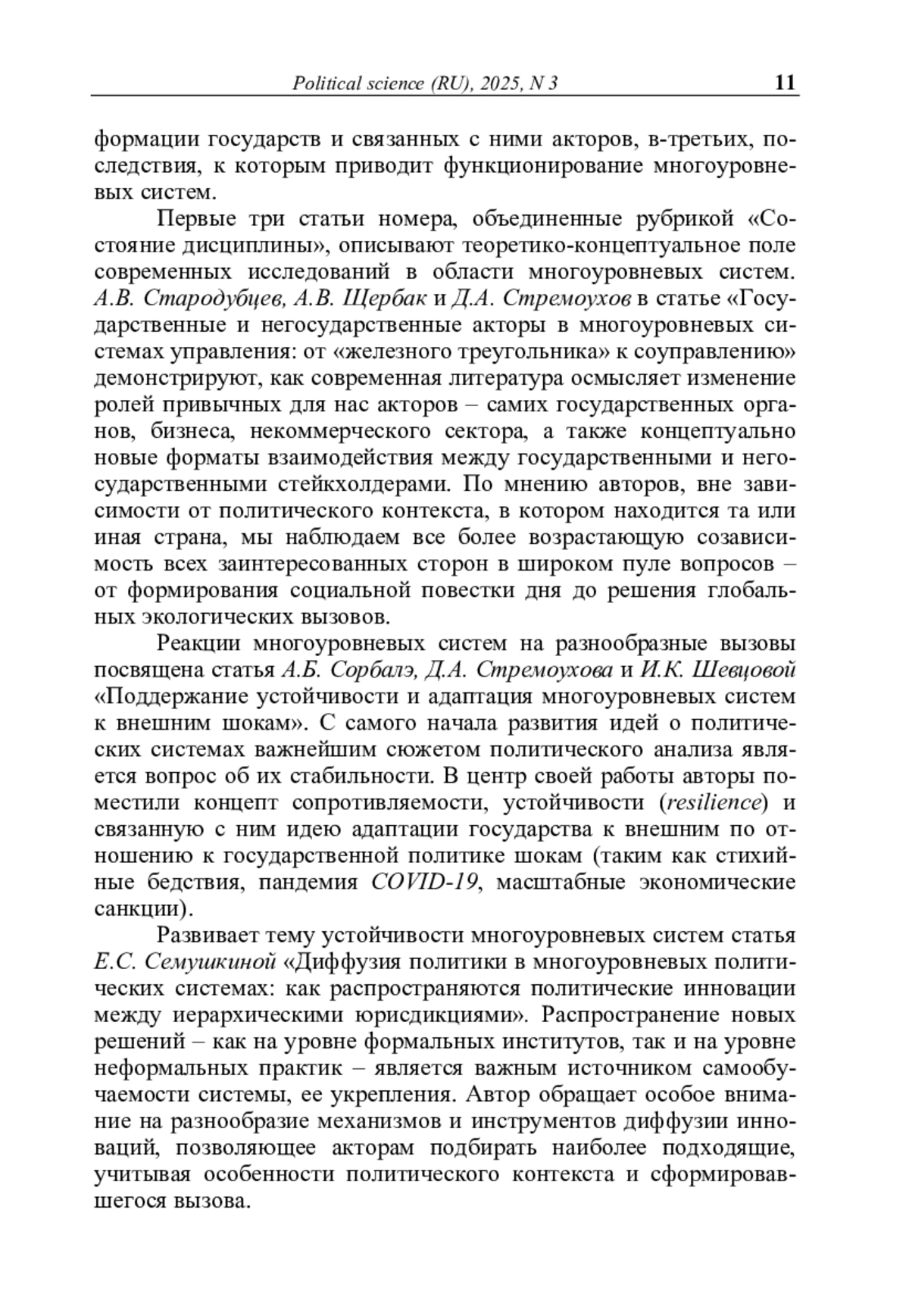 Вступительное слово от редакции журнала “ПОЛИТИЧЕСКАЯ НАУКА” к выпуску №3 (2025г.)