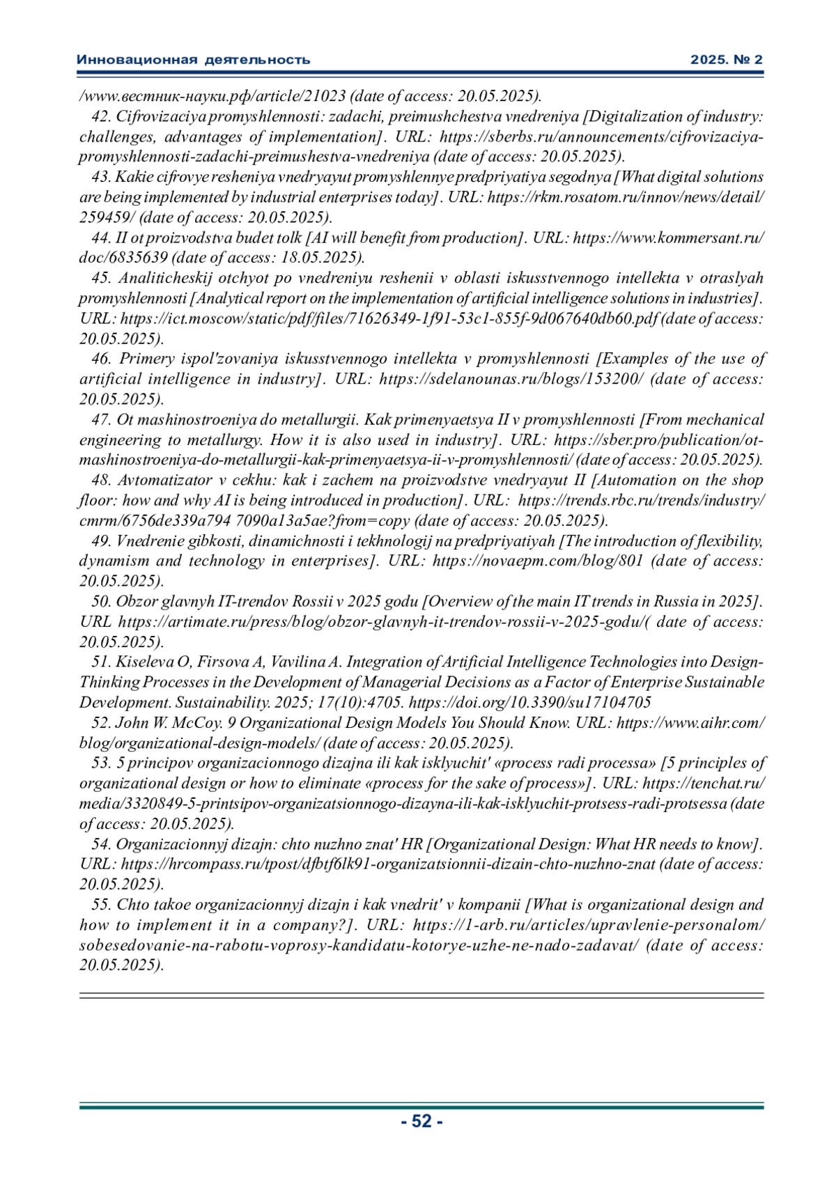 Статья: РАЗВИТИЕ ОРГАНИЗАЦИОННОГО ДИЗАЙНА СОВРЕМЕННЫХ ПРОМЫШЛЕННЫХ ПРЕДПРИЯТИЙ РОССИИ НА ОСНОВЕ ТЕХНОЛОГИЙ ИСКУССТВЕННОГО ИНТЕЛЛЕКТА (2025)