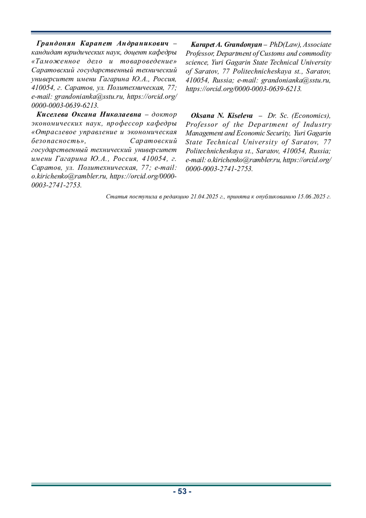 Автор (ы): ГРАНДОНЯН КАРАПЕТ АНДРАНИКОВИЧ, Киселева Оксана Николаевна