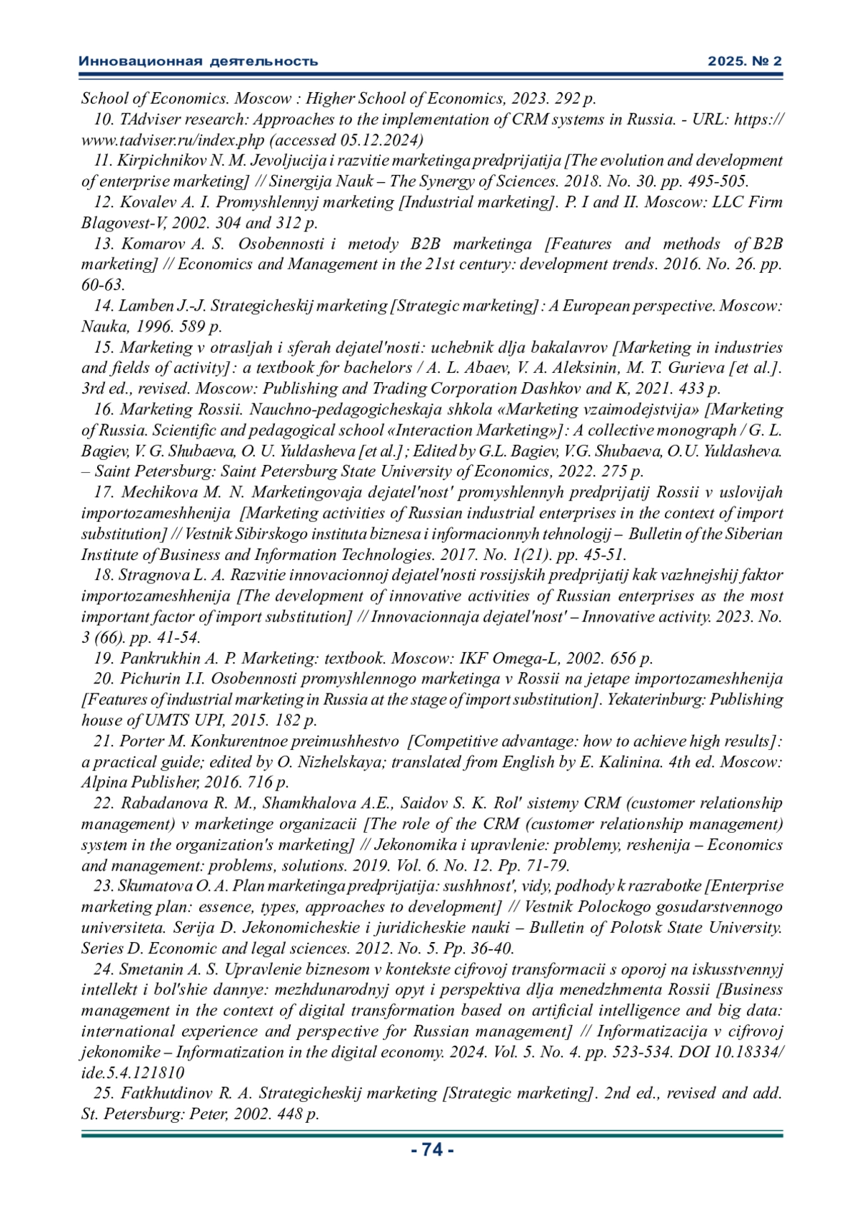 11. Кирпичников Н. М. Эволюция и развитие маркетинга предприятия // Синергия Наук. 2018. № 30. С. 495-505. EDN: VQSUDQ