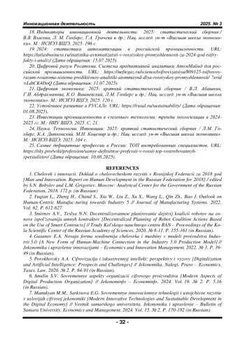 6. Амелин С.В. Современные аспекты организации цифрового производства // Экономинфо. 2024. Т. 19. № 2. С. 5.16.