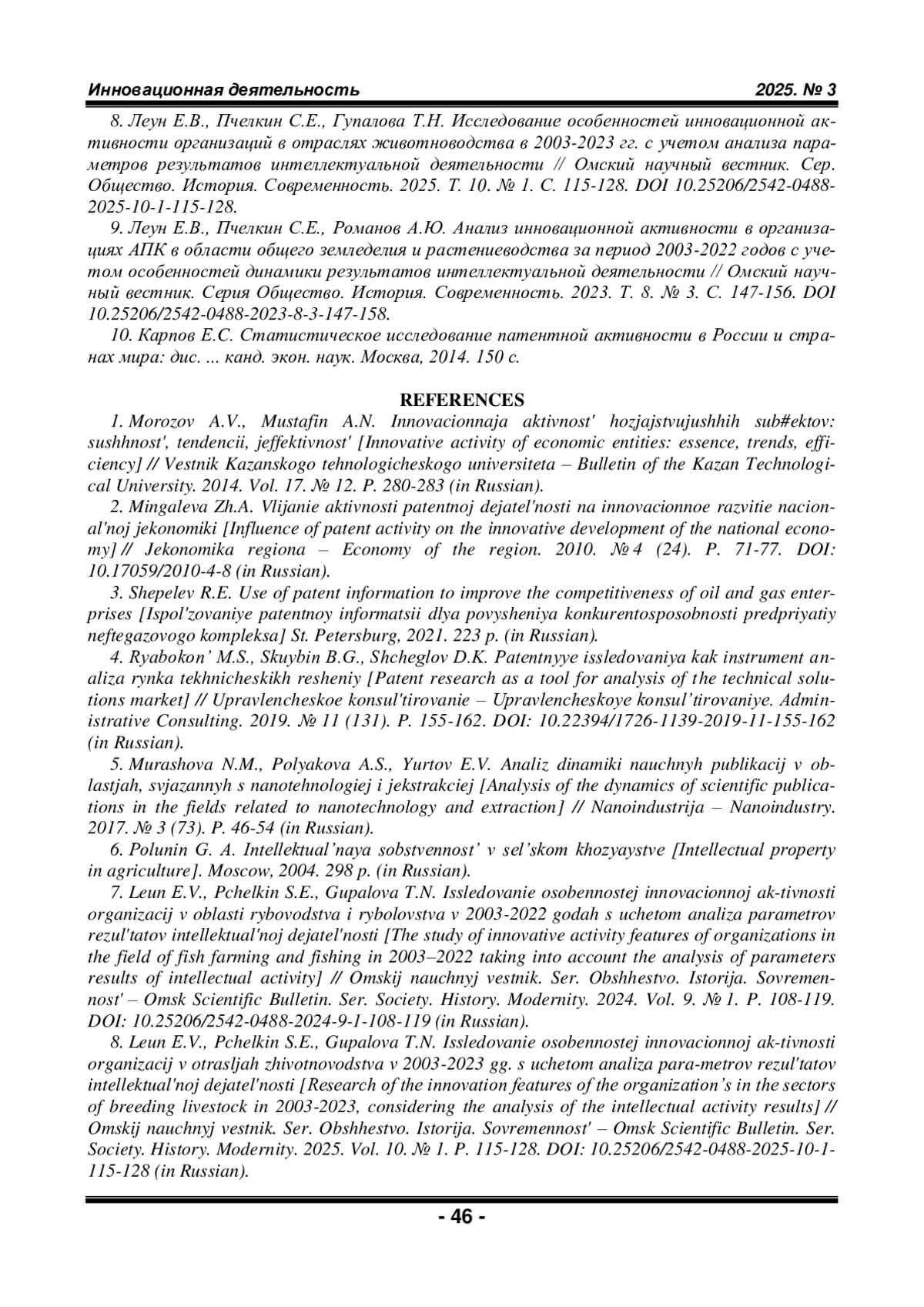 В статье обсуждаются сформированные за последние годы, начиная с 2003 года, тенденции оценивания инновационной активности (ИА) организаций в отраслях АПК, а именно, общего земледелия и растениеводства, рыбоводства и рыболовства, а также трех отраслей животноводства: сельскохозяйственных млекопитающих, птицеводства и пчеловодства. Обсуждаются две составляющие ИА: внутренняя и внешняя. Рассматриваются особенности недооценки в России внутренней ИА из-за недопатентования и основы методики ее уменьшения за счет учета трех групп патентов: стандартных, коммерциализированных и высокотехнологичных, а также диссертаций. Показано, что оценивание внешней ИА наиболее полно на основе группы двадцати стран технологических лидеров, близкой к «Большой двадцатке» G20. Обсуждается высокая информативность высокотехнологичных патентов. На основе их анализа выдвинута гипотеза о связи т. н. «крымских событий» с появлением скрытой, неявной политической цели «коллективного Запада» во главе с США и ЕС обеспечить их технологическое доминирование над Россией и ее изоляцию в области высоких технологий.