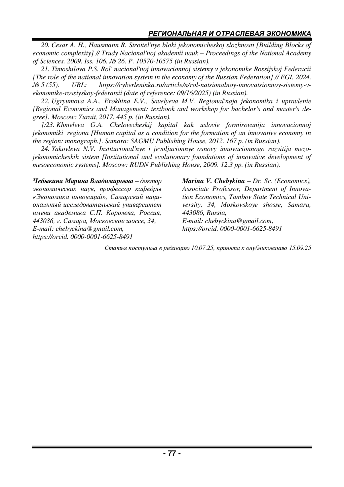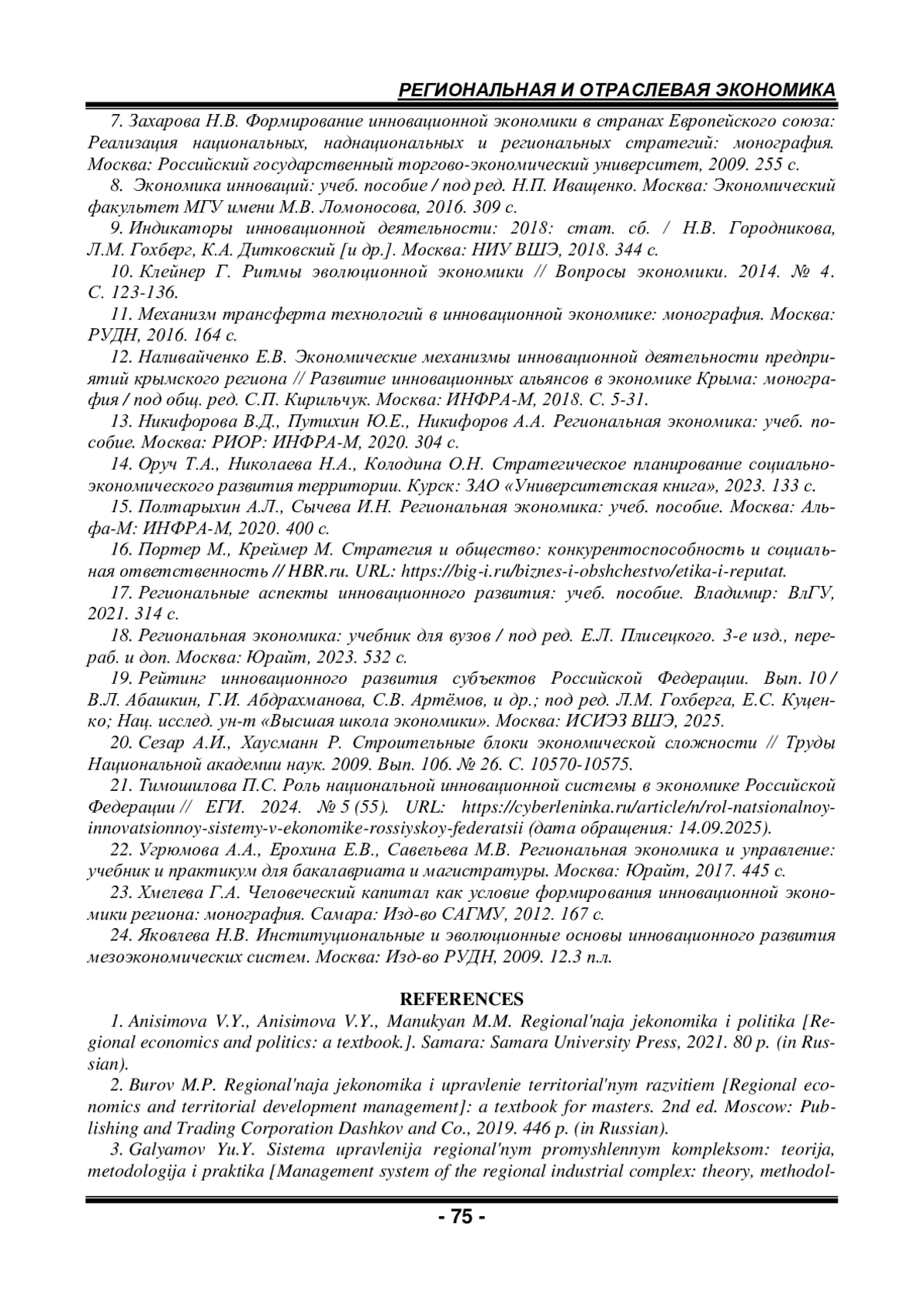ЧЕБЫКИНА М. В. РЕГИОНАЛЬНЫЕ ПРОМЫШЛЕННЫЕ СИСТЕМЫ В КОНТЕКСТЕ ИННОВАЦИОННОГО РАЗВИТИЯ ЭКОНОМИКИ // ИННОВАЦИОННАЯ ДЕЯТЕЛЬНОСТЬ. 2025. № 3 (74)