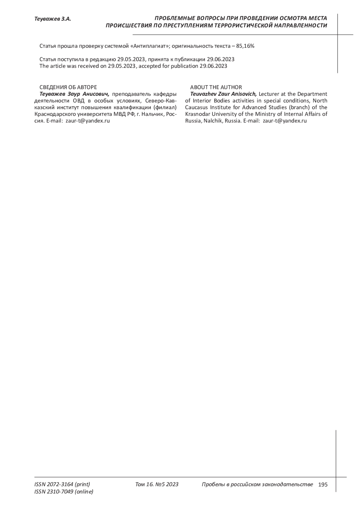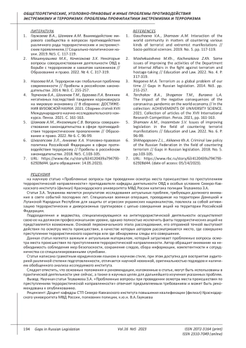 5. Шамаев А.М., Иноземцев С.В. Вопросы совершенствования законодательства в сфере противодействия террористическим проявлениям // Образование и право. 2022. № 6. С. 96-99. EDN: TDDXVR