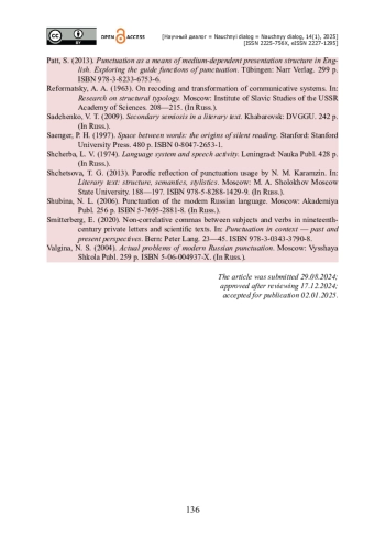 35. Patt S. Punctuation as a means of medium-dependent presentation structure in English. Exploring the guide functions of punctuation / S. Patt. - Tübingen : Narr Verlag, 2013. - 299 p. - ISBN 978-3-8233-6753-6.