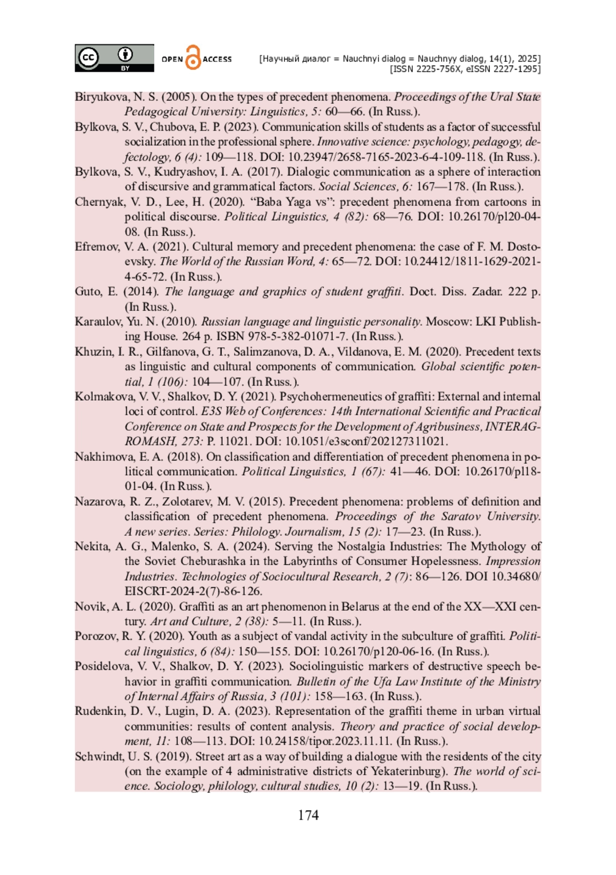 15. Порозов Р. Ю. Молодёжь как субъект вандальной активности в субкультуре граффити / Р. Ю. Порозов, П. С. Клюсова // Политическая лингвистика. - 2020. - № 6 (84). - C. 150-155. - https://doi.org/10.26170/p120-06-16.