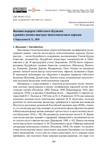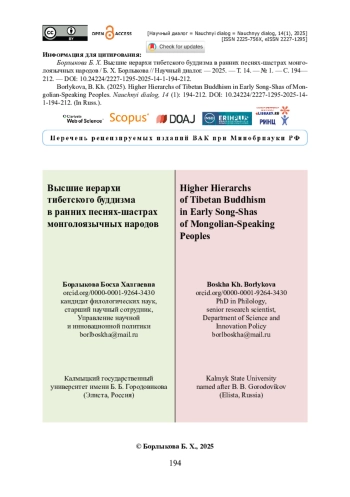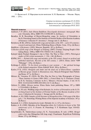 22. Борлыкова Б. Х. Гневные божества «докшиты» в ранних песнях-шастрах монголоязычных народов / Б. Х. Борлыкова // Языки и фольклор коренных народов Сиби-ри. - 2023б. - № 4. - Выпуск 48. - С. 126-137.