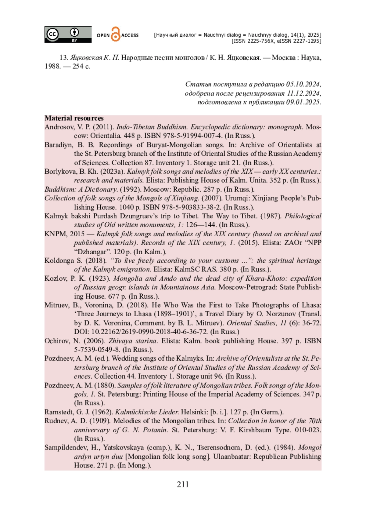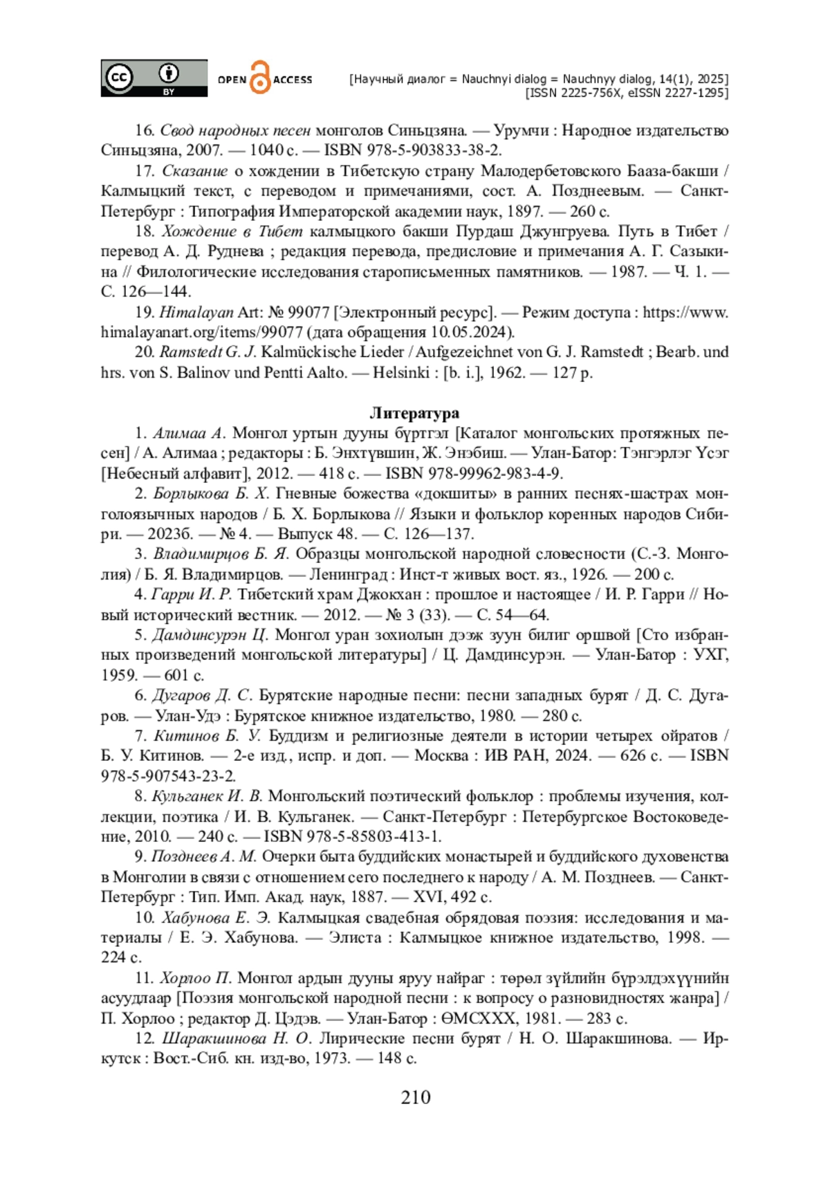 3. Борлыкова Б. Х. Калмыцкие народные песни и мелодии XIX - начала XX вв. : исследование и материалы / Б. Х. Борлыкова. - Элиста : Изд-во Калм. ун-та, 2023а. - 352 с.