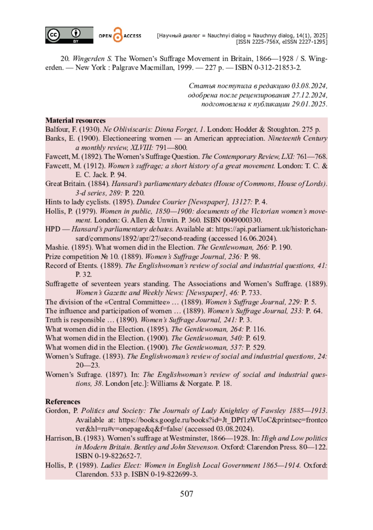 25. Школьников И.А. Суфражизм и политические партии в Великобритании в середине Х1Х - начале ХХ вв. : опыт взаимодействия [Электронный ресурс] / И. А. Школьников, О. В. Шнырова. - Режим доступа : https://studylib.ru/doc/4141993/sufrazhizm-i-politicheskie-partii-v-velikobritanii-v?ysclid=lz9iypqgvi760618589 (дата обращения 01.08.2024).