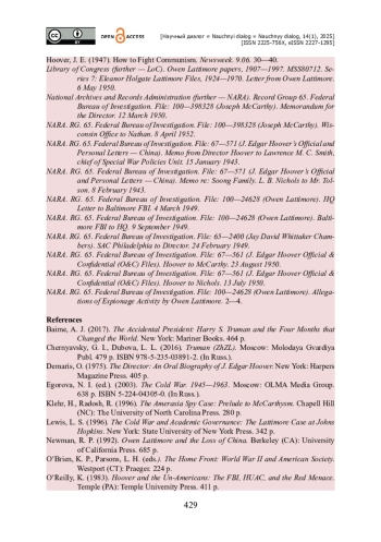 5. Hoover J. E. How to Fight Communism / J. E. Hoover // Newsweek. - 9.06.1947. - Pp. 30-40.
